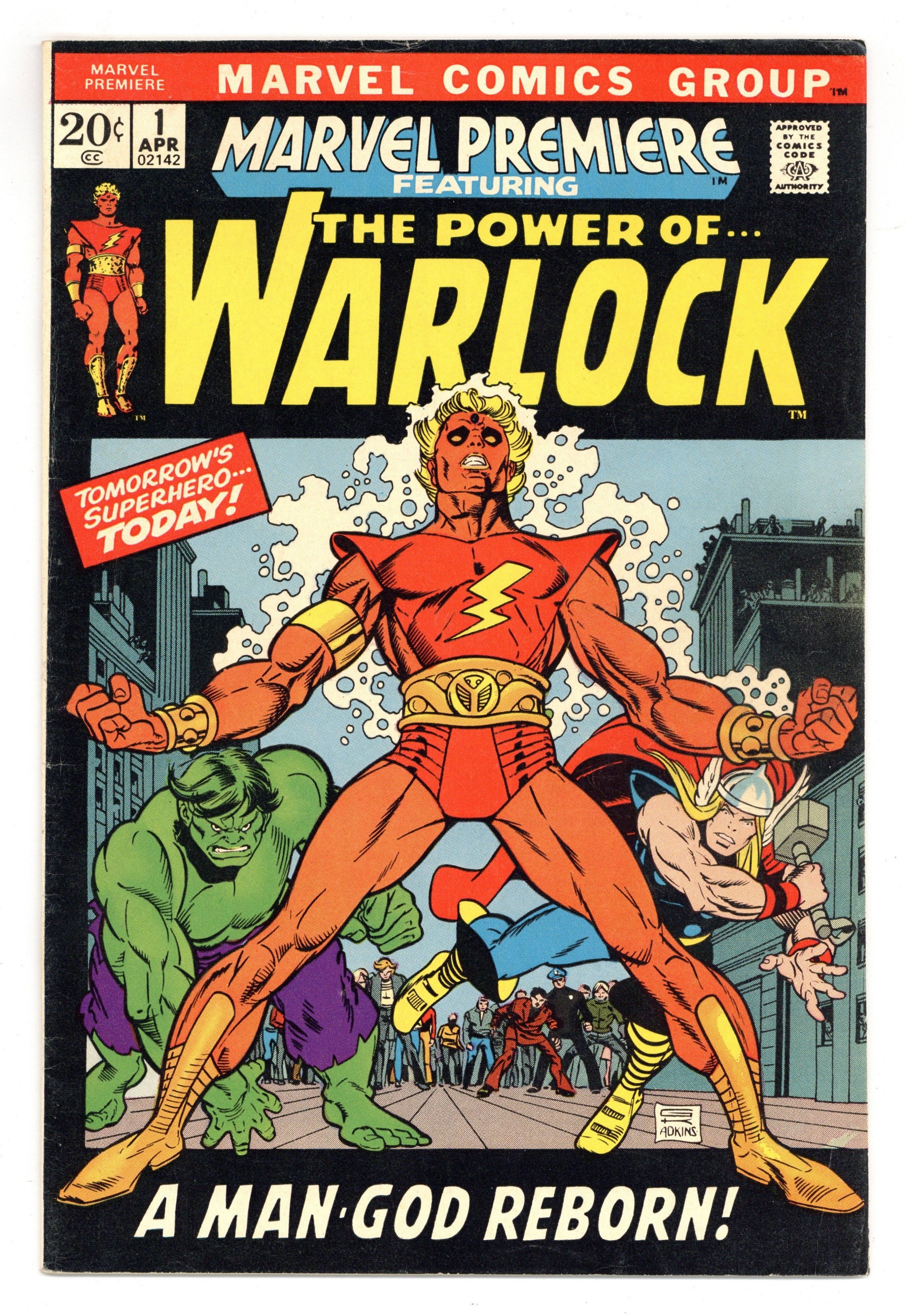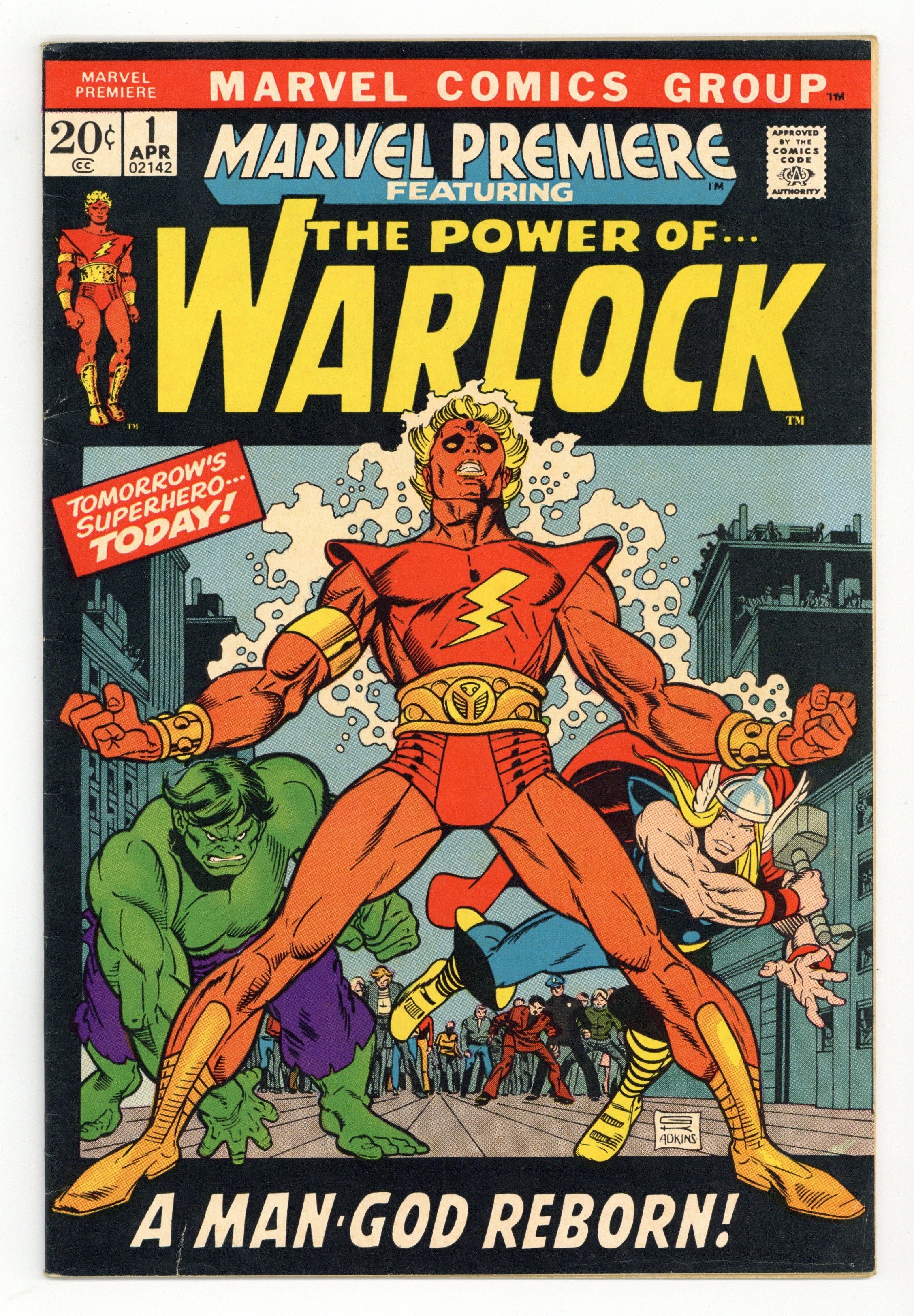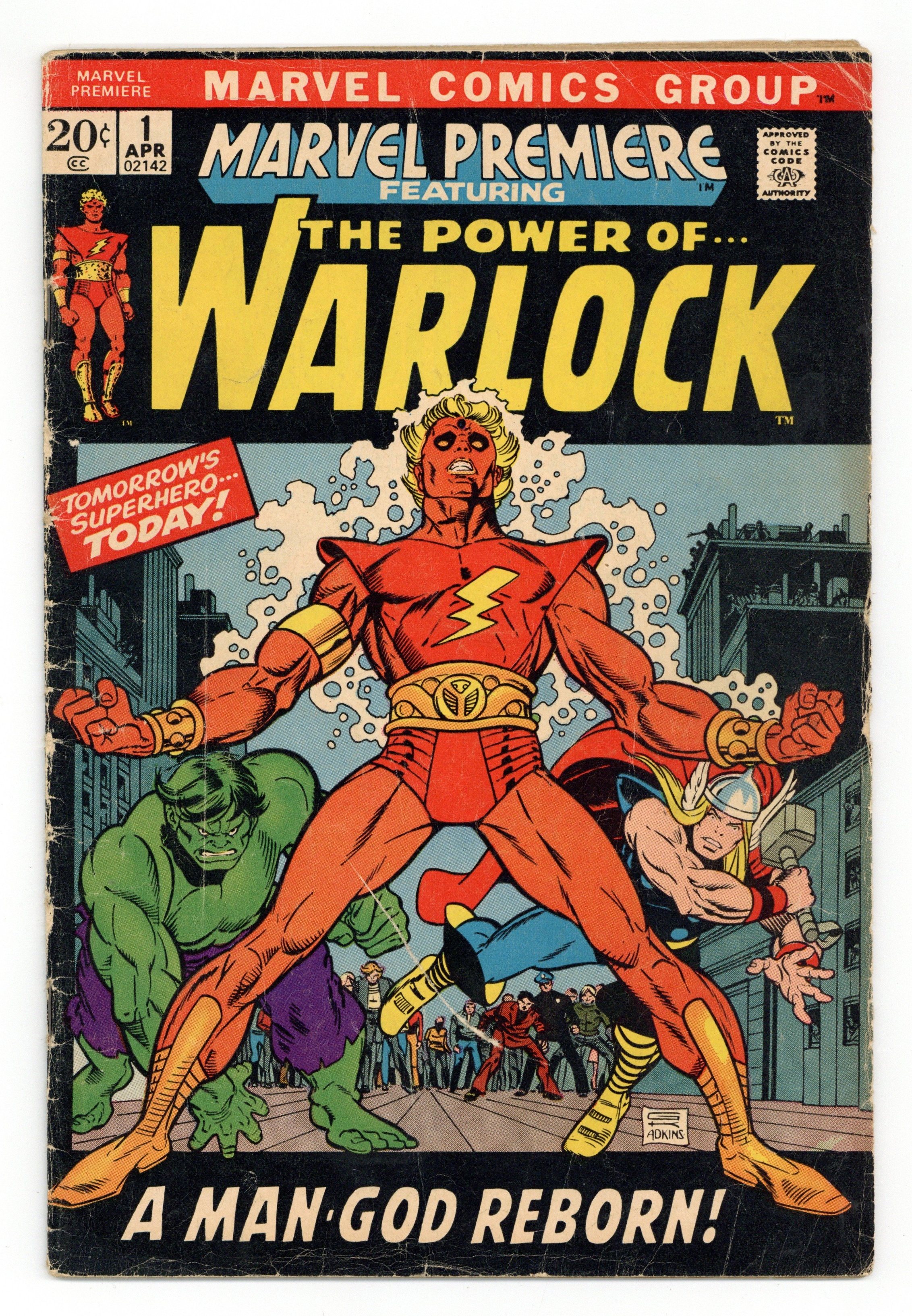 Origin of Warlock and Counter-Earth in "And Men Shall Call Him Warlock!" Script by Roy Thomas, pencils by Gil Kane, inks by Dan Adkins. This is the first appearance of Warlock, who was previously the character "Him" in Fantastic Four (see issues 66 and 67) and Thor (issues 165, 166) comics. High Evolutionary guest stars. Brief appearances by the Hulk and Thor. Kane/Adkins cover. Cover price $0.20.