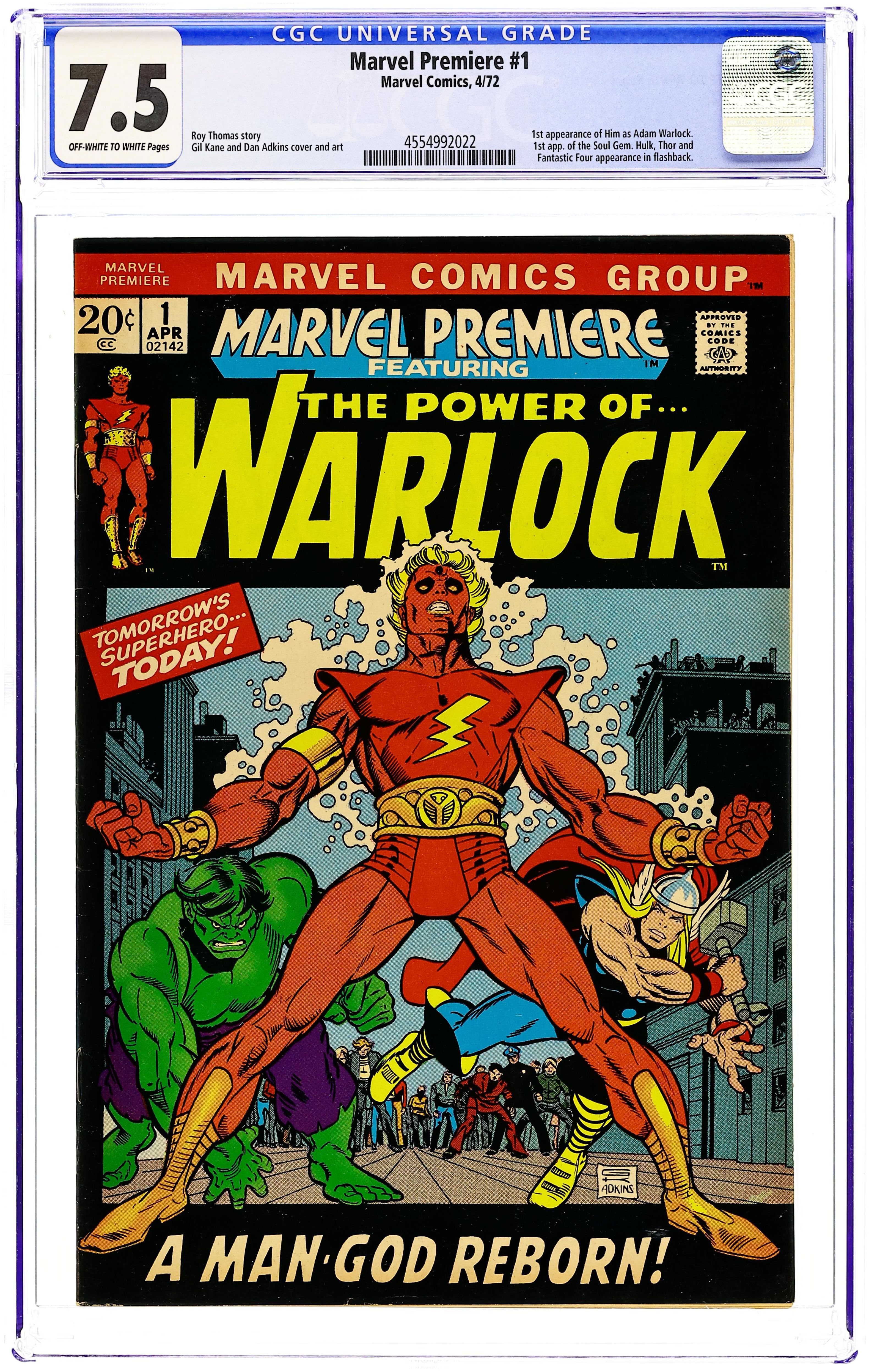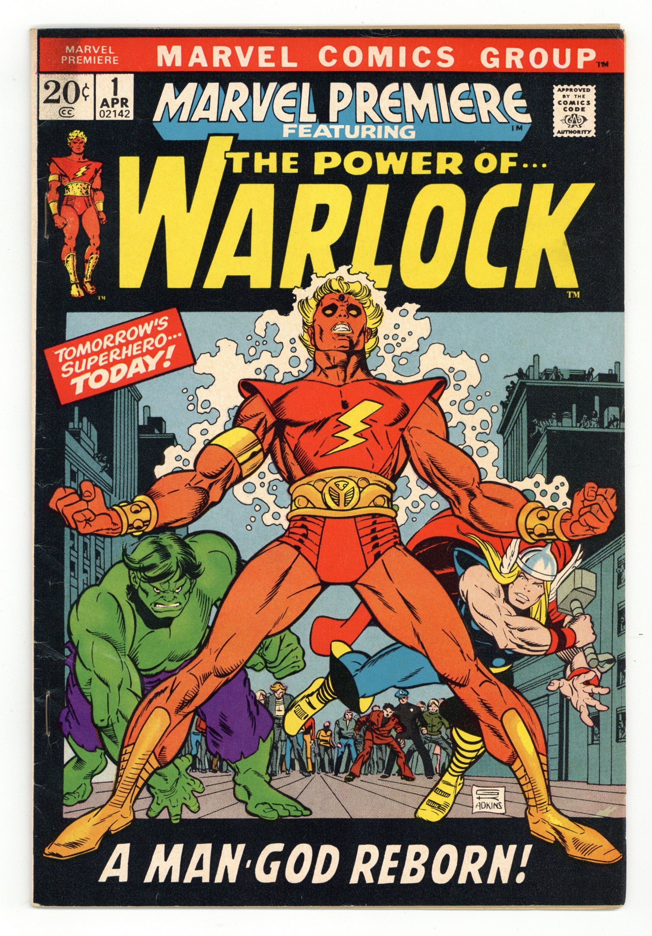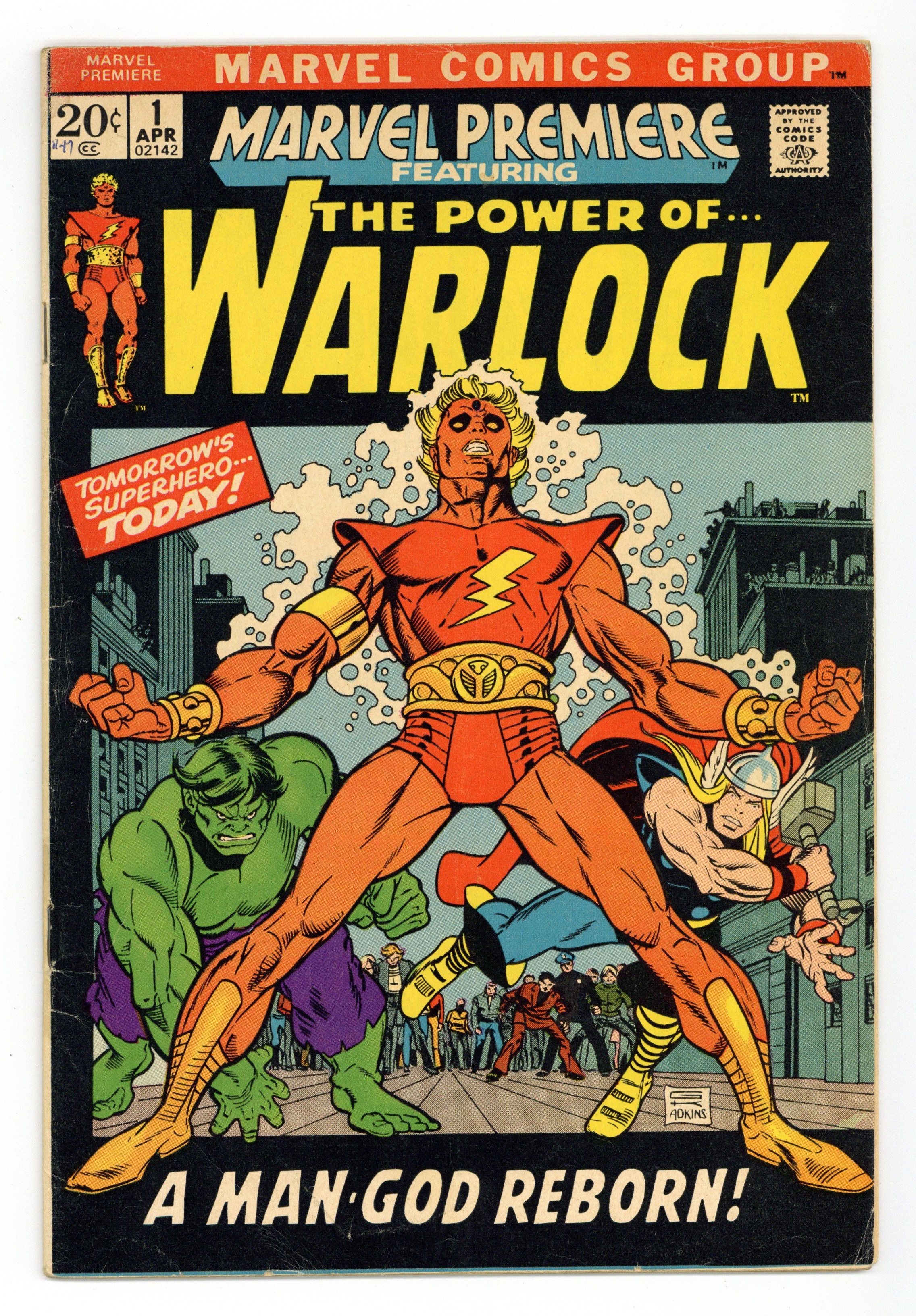 Origin of Warlock and Counter-Earth in "And Men Shall Call Him Warlock!" Script by Roy Thomas, pencils by Gil Kane, inks by Dan Adkins. This is the first appearance of Warlock, who was previously the character "Him" in Fantastic Four (see issues 66 and 67) and Thor (issues 165, 166) comics. High Evolutionary guest stars. Brief appearances by the Hulk and Thor. Kane/Adkins cover. Cover price $0.20.
