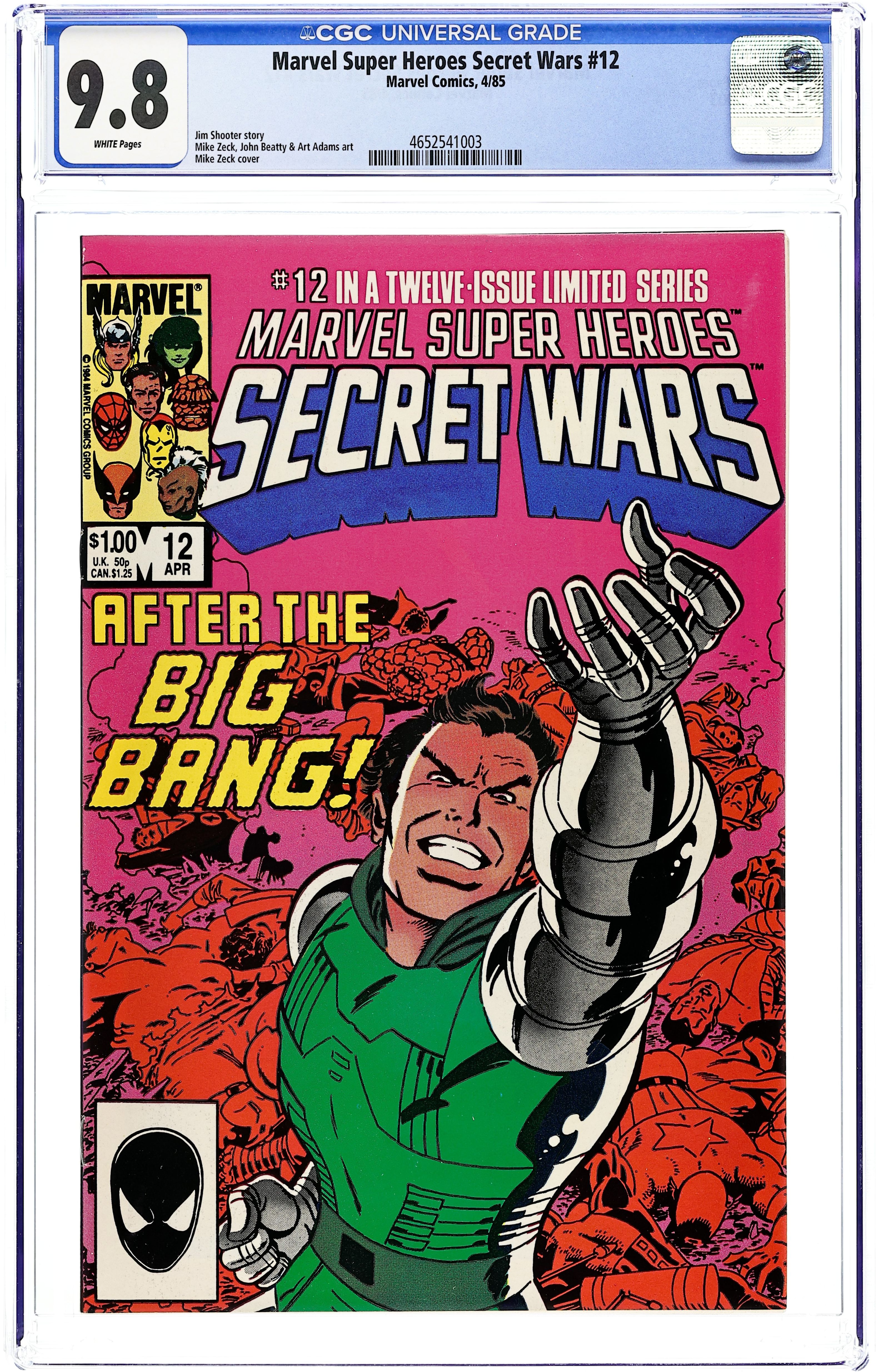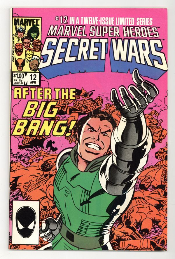 Tags: Secret Wars (1984) (part 12)$24.00Direct Edition. "...Nothing to Fear...!" Part 12 of 12. Story by Jim Shooter. Art by Mike Zeck and John Beatty. Plus: Mike Mignola and Art Adams (some inks). This is it, the explosive conclusion to the most epic adventure of all. The Marvel heroes rally behind Captain America and confront a cosmically empowered Doctor Doom in a final showdown that will change everything. The end of this epic story has great ramifications throughout the Marvel Universe. Plot threads from this issue continue in Thing #11, Fantastic Four #265, Amazing Spider-Man #252, Avengers #243, and Secret Wars II #1. 36 pages, full color. Cover price $1.00.