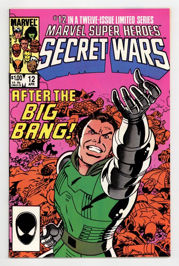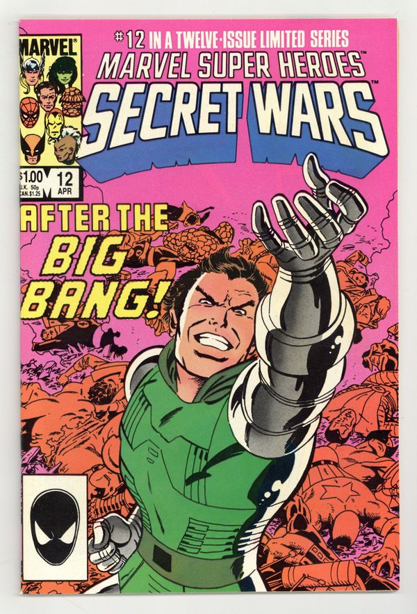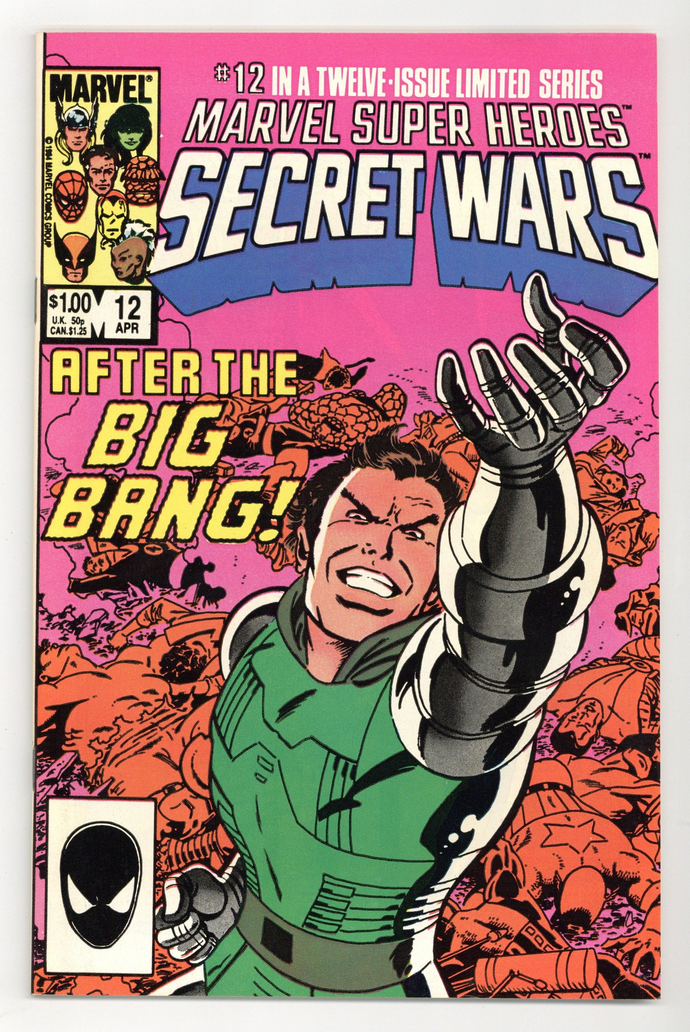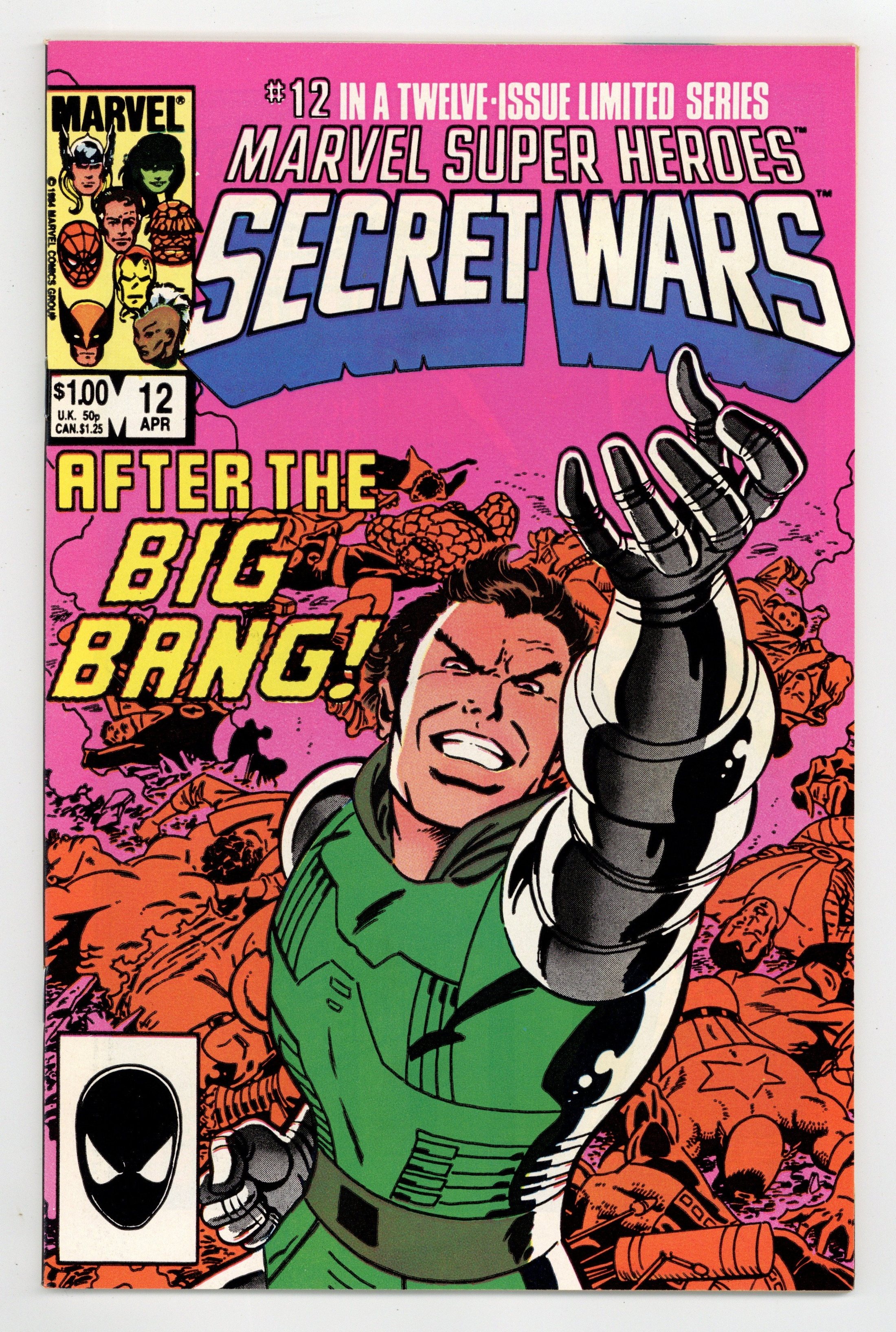 Tags: Secret Wars (1984) (part 12)$19.50Direct Edition. "...Nothing to Fear...!" Part 12 of 12. Story by Jim Shooter. Art by Mike Zeck and John Beatty. Plus: Mike Mignola and Art Adams (some inks). This is it, the explosive conclusion to the most epic adventure of all. The Marvel heroes rally behind Captain America and confront a cosmically empowered Doctor Doom in a final showdown that will change everything. The end of this epic story has great ramifications throughout the Marvel Universe. Plot threads from this issue continue in Thing #11, Fantastic Four #265, Amazing Spider-Man #252, Avengers #243, and Secret Wars II #1. 36 pages, full color. Cover price $1.00.