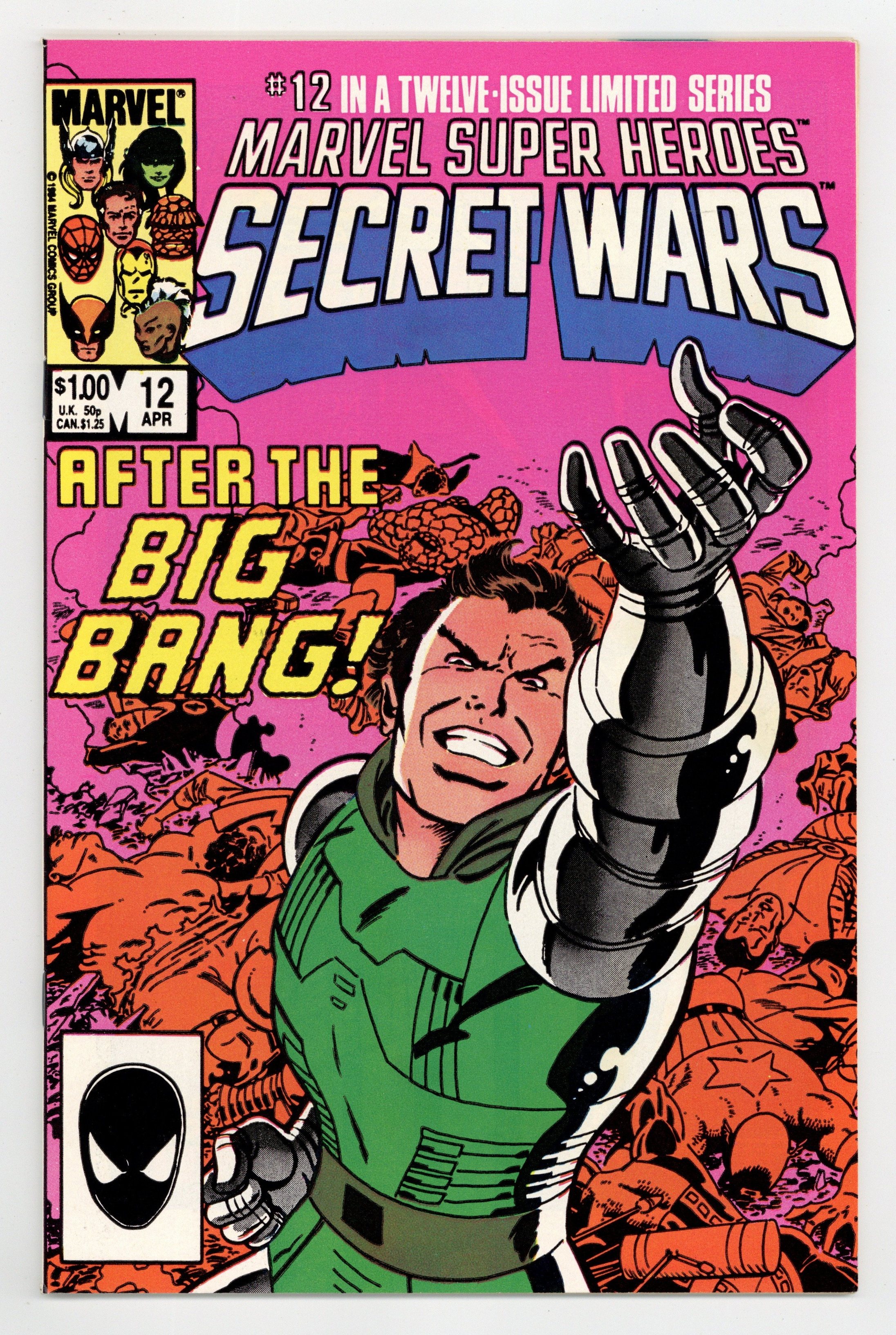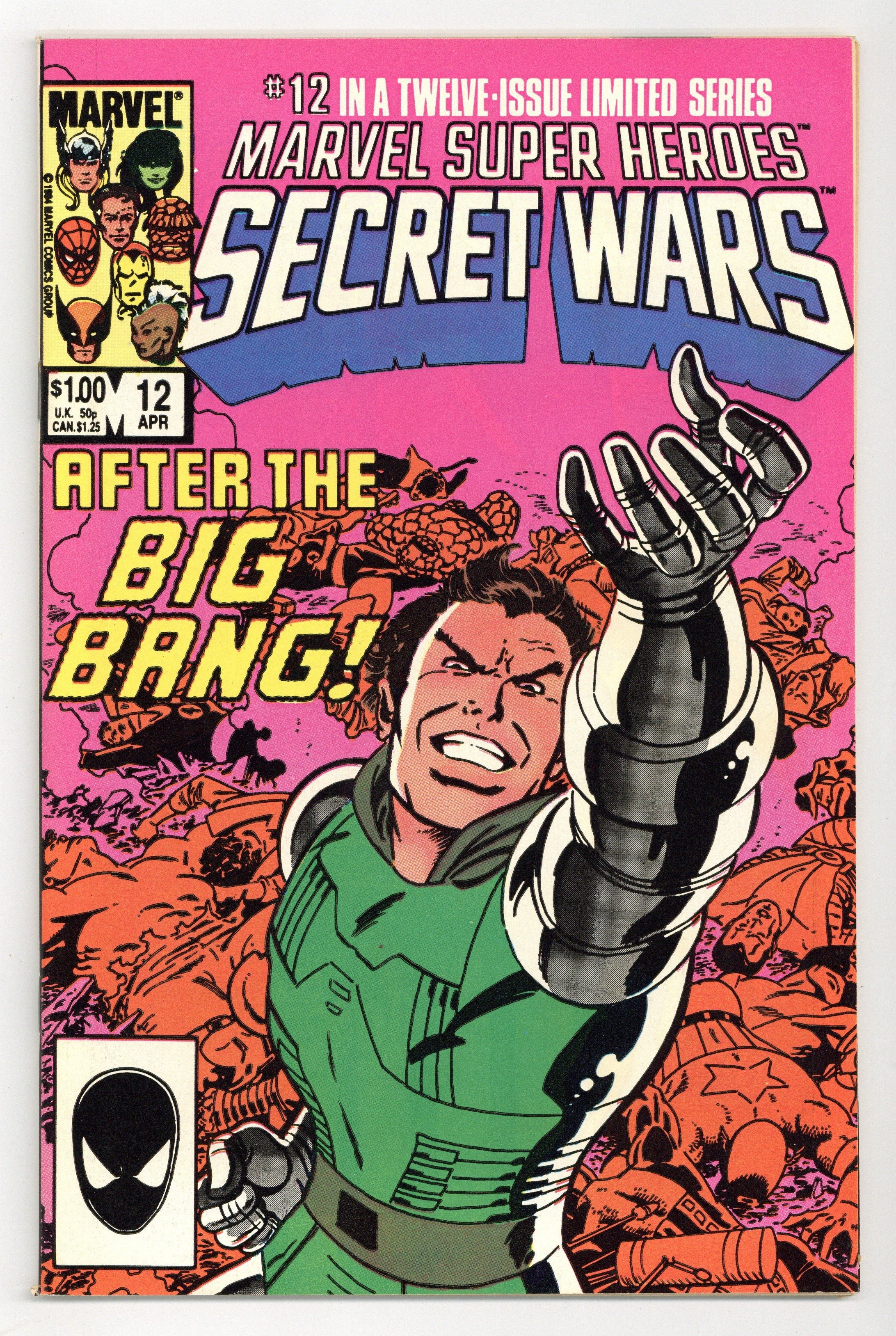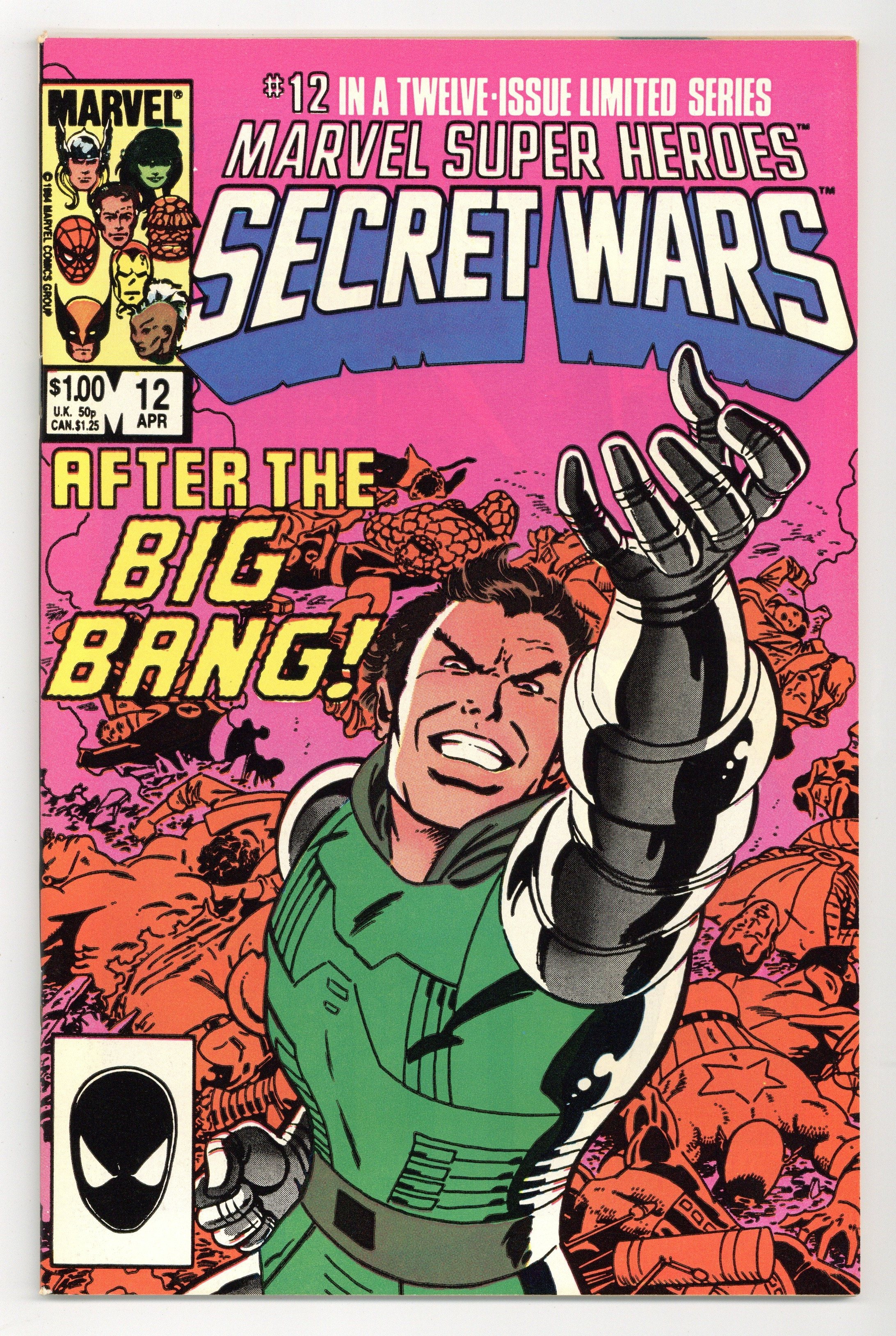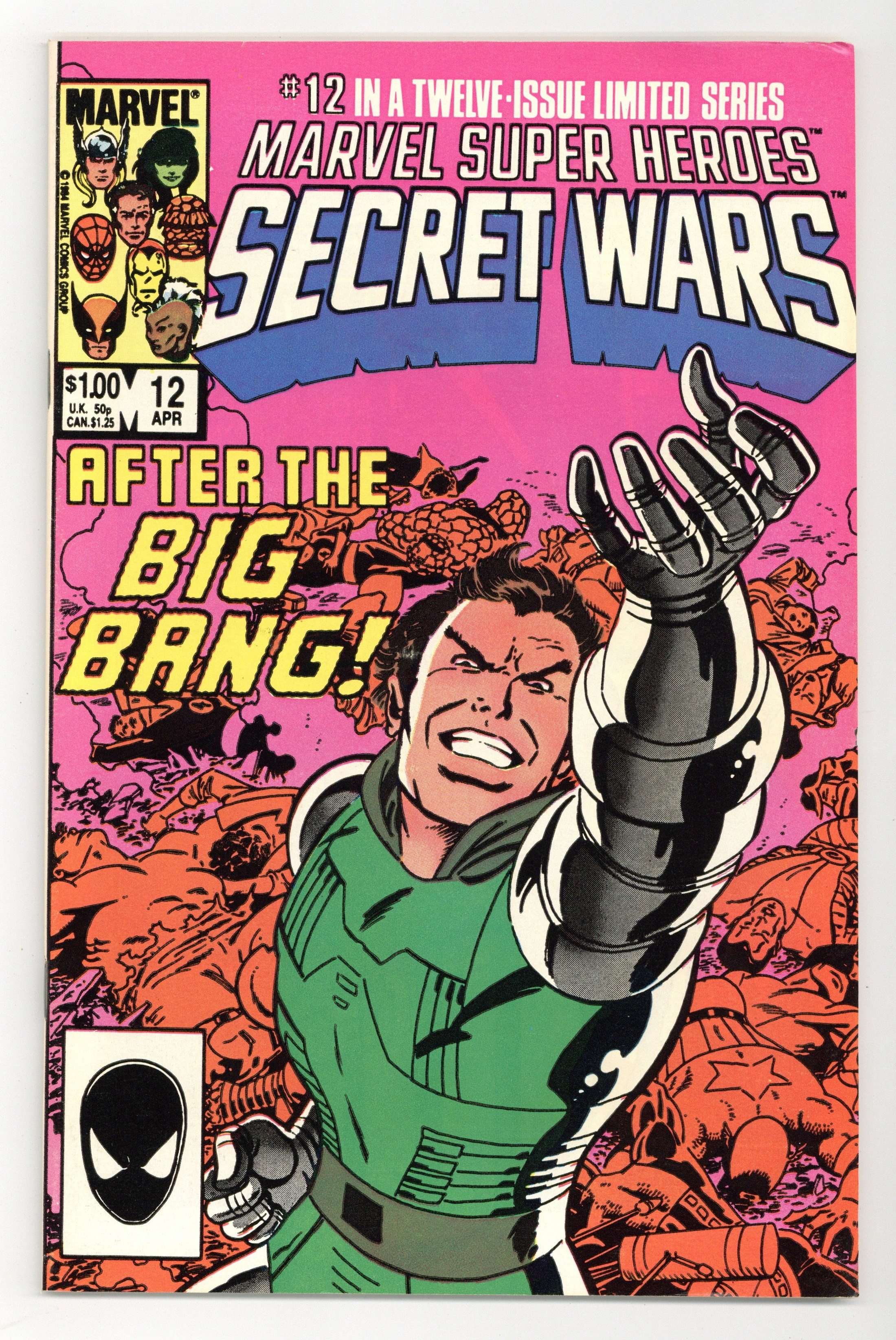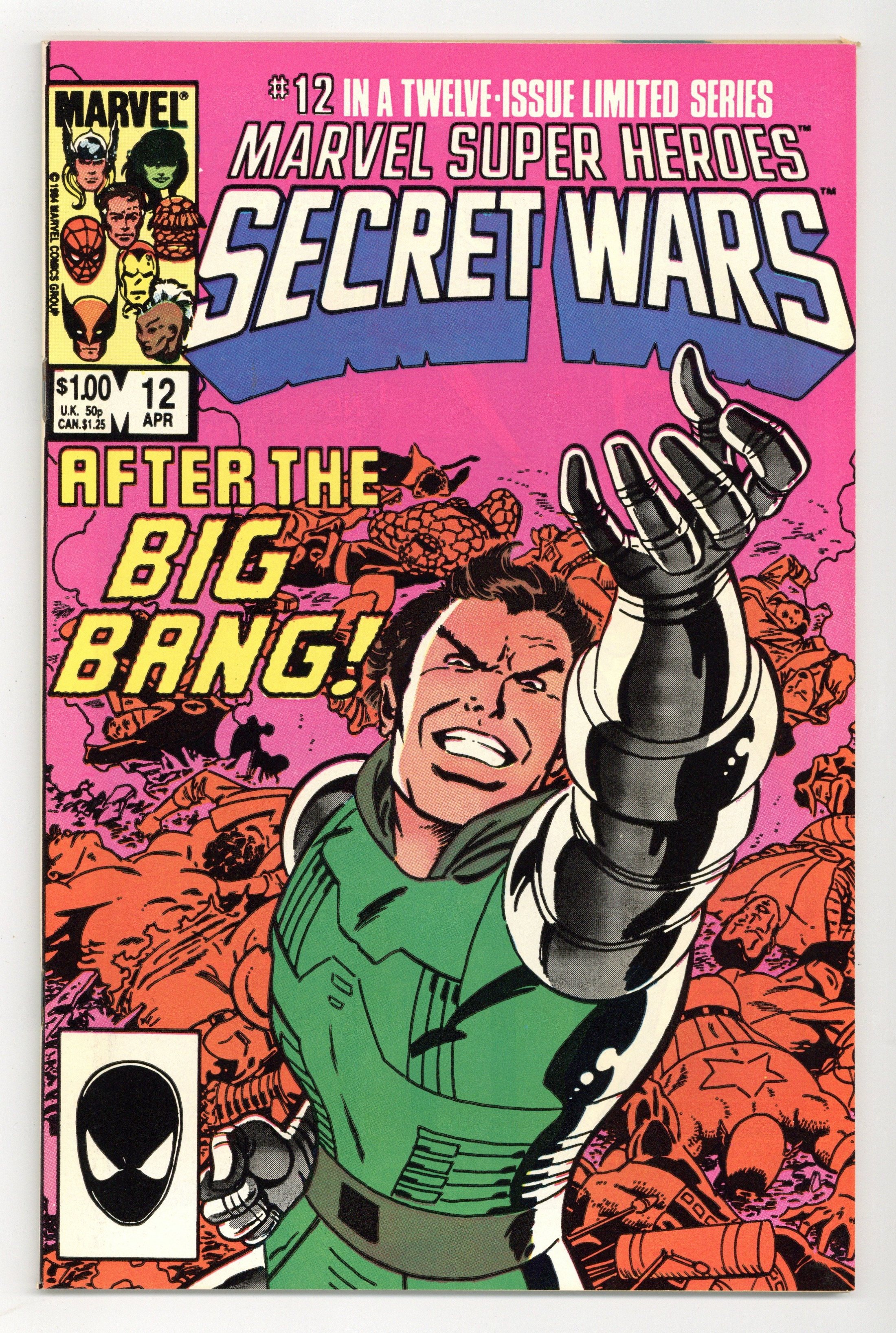 Tags: Secret Wars (1984) (part 12)$13.00Direct Edition. "...Nothing to Fear...!" Part 12 of 12. Story by Jim Shooter. Art by Mike Zeck and John Beatty. Plus: Mike Mignola and Art Adams (some inks). This is it, the explosive conclusion to the most epic adventure of all. The Marvel heroes rally behind Captain America and confront a cosmically empowered Doctor Doom in a final showdown that will change everything. The end of this epic story has great ramifications throughout the Marvel Universe. Plot threads from this issue continue in Thing #11, Fantastic Four #265, Amazing Spider-Man #252, Avengers #243, and Secret Wars II #1. 36 pages, full color. Cover price $1.00.