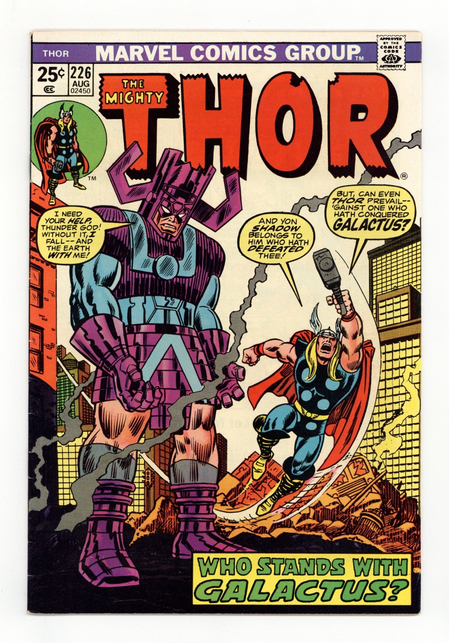 Cover pencils by John Romita. "The Battle Beyond!", script by Gerry Conway, pencils by John Buscema, inks by Mike Esposito and Dave Hunt; Firelord has summoned Galactus, then leaves; Unfortunately, a reporter heard everything, and reports the news, and panic begins to spread; Blake tells Hercules the history of Galactus; Meanwhile, Galactus has arrived on Earth; Galactus tells Thor of the mad Ego, and how he was defeated by him; He wants Thor to fight Ego; With the power of Galactus, they barely manage to breach the atmosphere of Ego and reach the surface. Cameos by the Silver Surfer, the Watcher, and the Fantastic Four. The letters page contains Marvel Value Stamp series A #58 (The Mandarin). 36 pgs., full color. $0.25. Cover price $0.25.