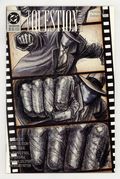 A film crew arrives in Hub City to shoot an action-adventure film, bringing a load of real guns. Add to the mix two warring street gangs hired as extras and the brutal Cathy Fregosi, who has come to steal the weapons. The result has the Question fighting for his own safety in the center of a war zone. Written by Dennis O'Neil, with art by Joe Quesada, Bruce N. Solotoff and Mickey Ritter. Cover by Denys Cowan. 52 pages. New Format. Cover price $2.50.