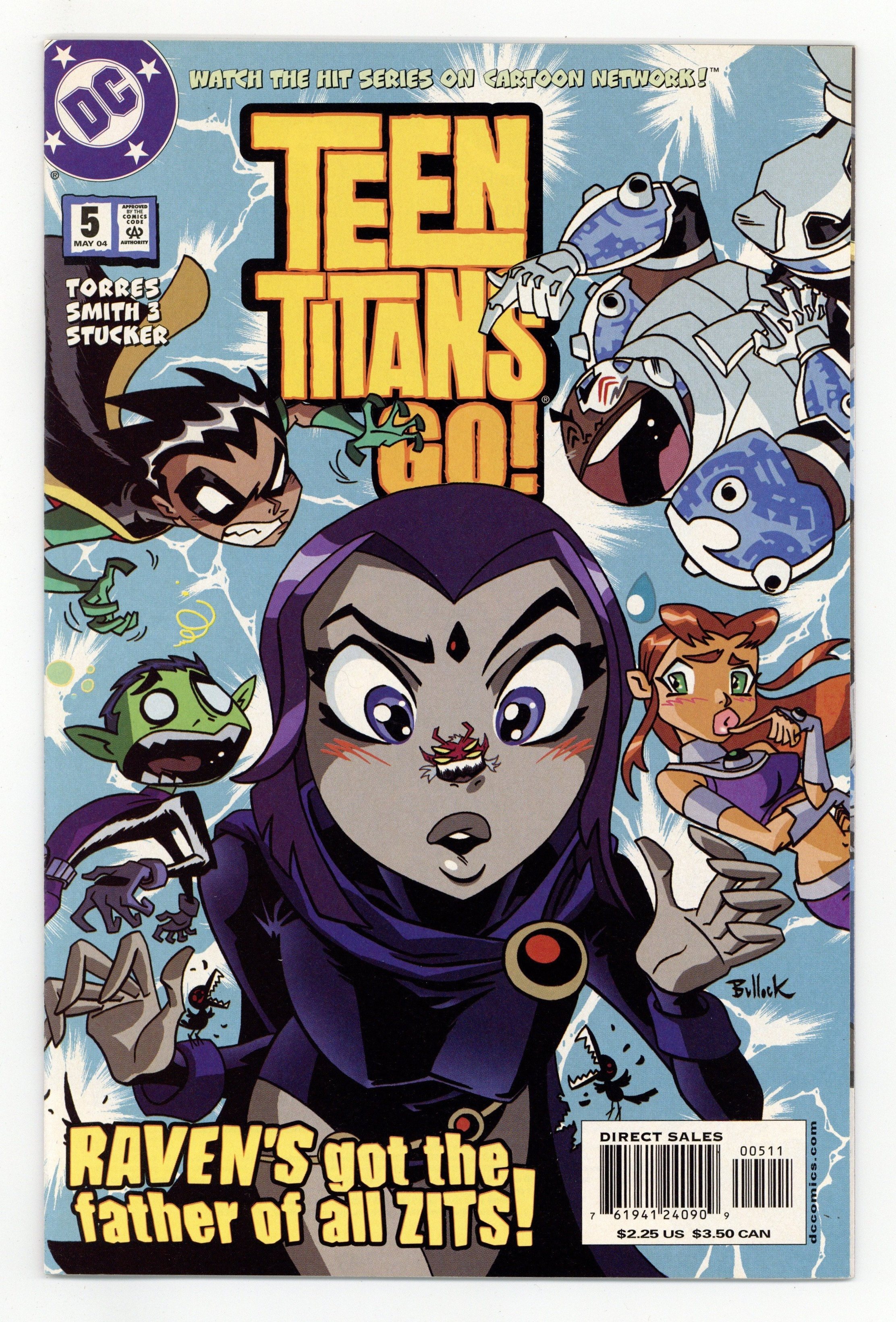 WRITTEN BY J. TORRES; ART BY TIM SMITH 3 AND LARY STUCKER; COVER BY DAVE BULLOCK In stores March 24. Raven's got the mother of all zits! And while her team tries to be helpful, they only stress her out further, causing the blemish to become an entity of its own! FC, 32 PG. $2.25 Cover price $2.25.