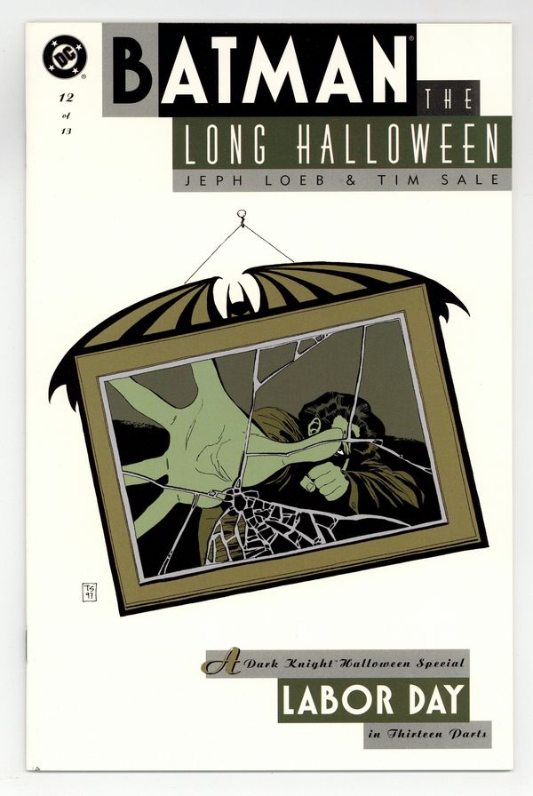 "Labor Day." Holiday goes after Boss Maroni, while Two-Face meets Solomon Grundy. Further evidence revealing the true identity of Holiday is given. Script by Jeph Loeb, art and cover by Tim Sale. Cover price $2.95.