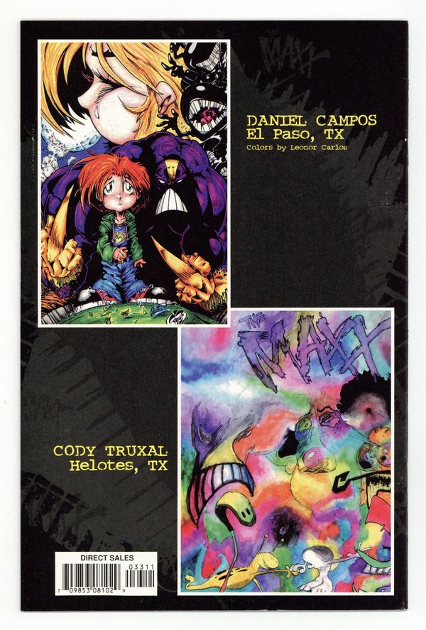 $34.00Written by Sam Kieth. Art by Sam Kieth and Jim Sinclair. Cover by Sam Kieth. Untitled story; Dude Japan and Mickey (from Friends of Maxx #1) are in the clutches of Uncle Freddie and his strange cult of followers; Is Uncle Freddie out to destroy them, or is he there to make them deal with what happened at that party 10 years ago? This is an extremely odd stand-alone story. 36 pgs., full color. $1.95. Cover price $1.95.