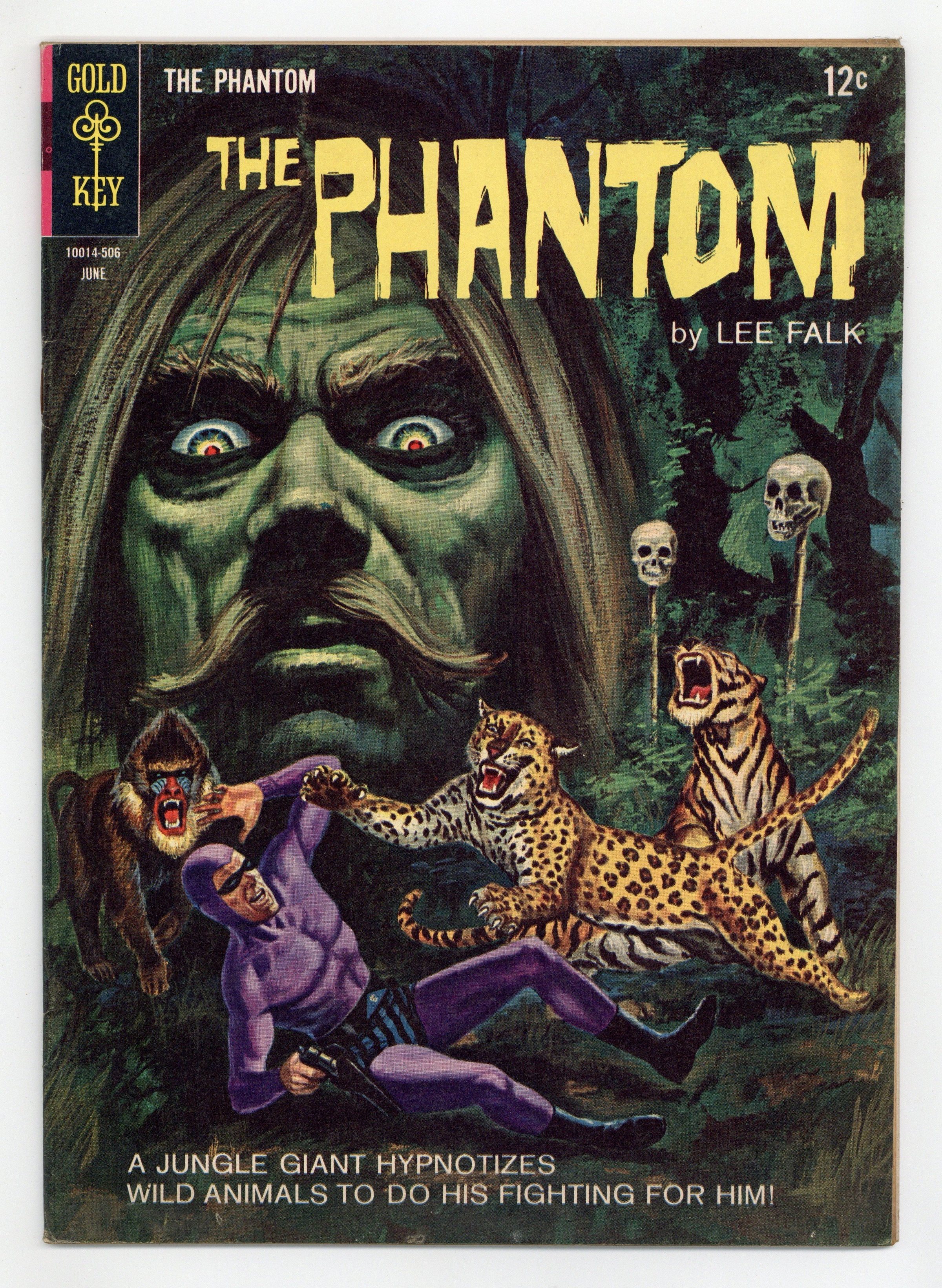 Painted cover art. "Architecture, Number 3: The Babylonians" Keys of Knowledge page, art by Joe Certa. "The Beast of Bengali," script by Bill Harris, art by Sparky Moore and Bill Lignante; The giant "baron" uses trained animals and ventriloquism to feign magic and exploit the people of the jungle; The Phantom uses special effects to match the Baron's "magic," then defeats him in hand-to-hand combat. Cheerios ad featuring Rocky and Bullwinkle. "Safaris into the Unknown," art by Bill Lignante; Track Hunter and his father are shipping animals when a gorilla escapes and runs amok, killing the father; Oloo intervenes with a gem that enables him to control the white apes. "Wild Animals of Asia, Number 6: The Moon Bear" Keys of Knowledge page, script by Gaylord Du Bois, art by Joe Certa. # on cover 10014-506 June. #12 6/65. 36 pgs., full color. Cover price $0.12.