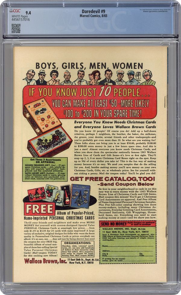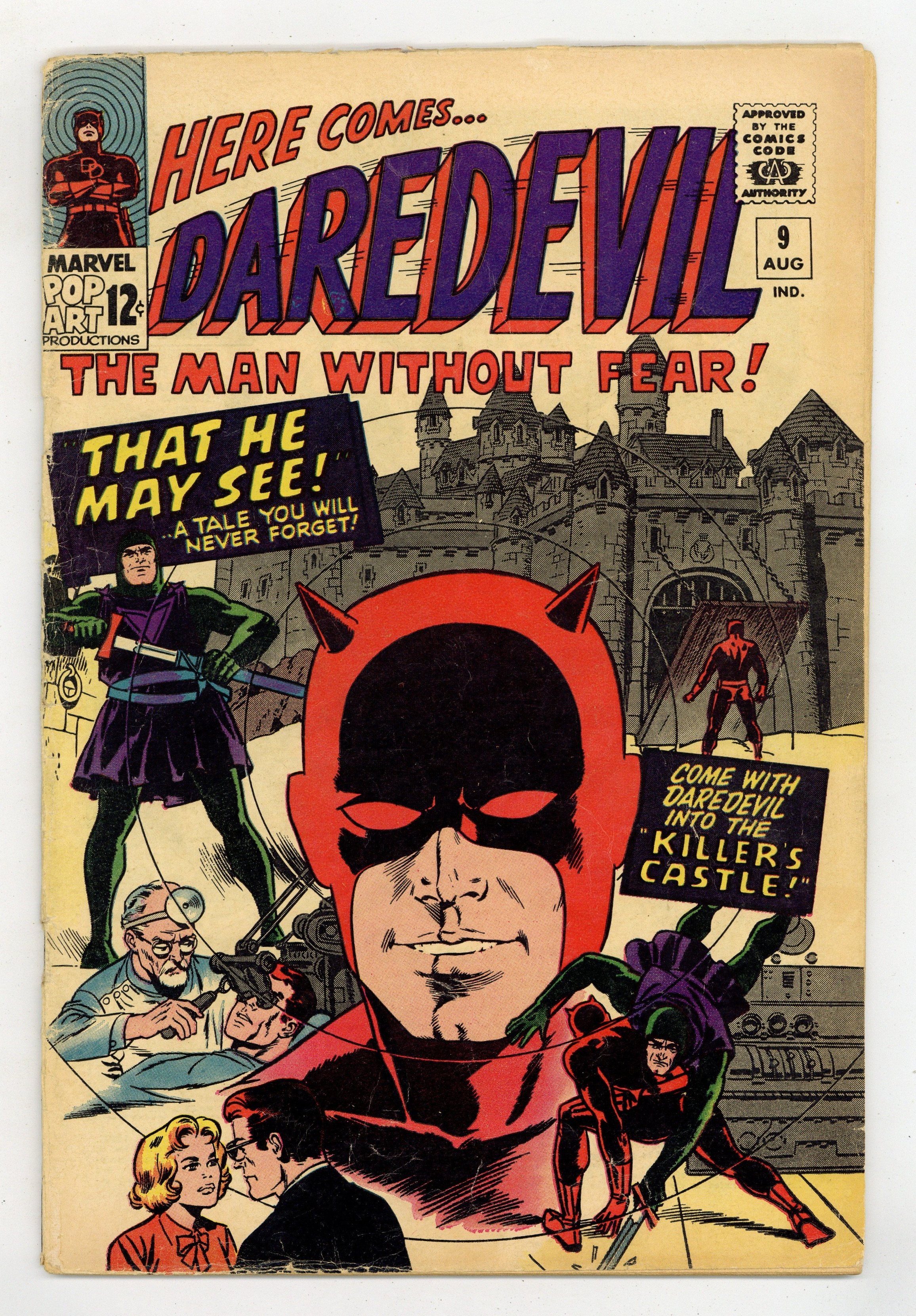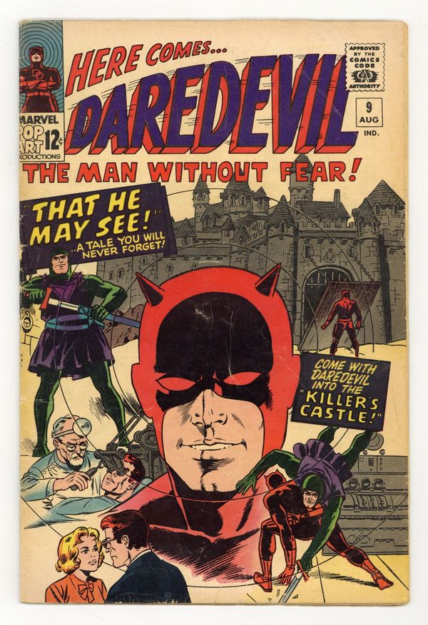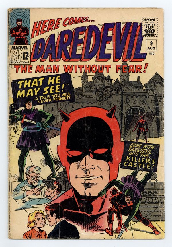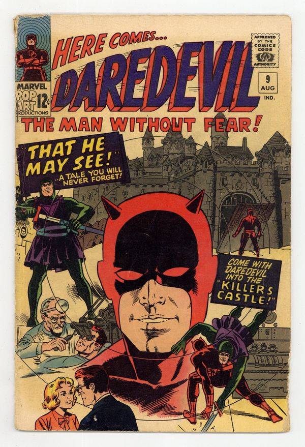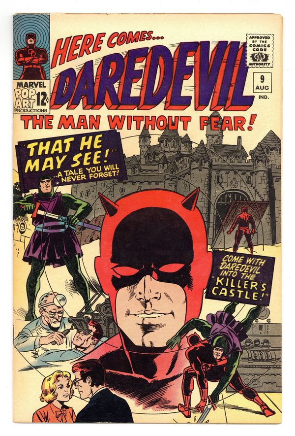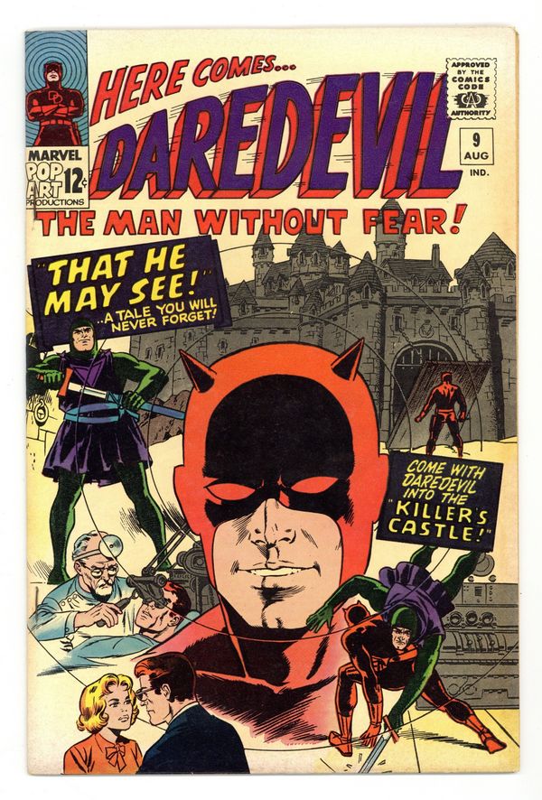 Cover art by Wally Wood. First appearance of Klaus Kruger in That He May See!, script by Stan Lee, pencils by Bob Powell, breakdowns and finished art by Wally Wood; One of Matt's old college pals is a ruler of his own European country and invites the blind lawyer over to see a doctor about restoring his sight; Once in Lichtenbad, DD is needed as Kruger turns out to be a ruthless dictator; The only doctor who could restore Matt's vision dies in the revolt. 32 pgs. Cover price $0.12. Cover price $0.12.