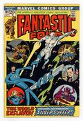 Tags: Fantastic Four$27.99The Silver Surfer and Galactus guest star in "This World Enslaved! " Part 4 of 4 . Script by Stan Lee. Pencils by John Buscema. Inks by Joe Sinnott. Cover by Sal Buscema. With a bold maneuver, Reed Richards turns the tables on the Devourer of Worlds! After sneaking onboard Galactus' starship, Mr. Fantastic threatens to destroy it unless the cosmic Ravager departs from Earth immediately! Will Reed's gallant gamble succeed? Possibly so, but first Mr. Fantastic has to convince the Silver Surfer, Agatha Harkness, General Thunderbolt Ross, and President Richard Nixon to trust him! The FF are going "all in" vs. Galactus! Will it be blackjack or bust? Cameo appearance by Franklin. (Notes: Galactus appears next in Thor 225. The Fantastic Four tangle with Galactus again in FF 172 thru 175. This four-part story was reprinted in Marvel Treasury Edition 21. The letters page includes a letter from comics editor David McDonnell. This issue includes a full-page ad for the first issue of the Hero For Hire series, later renamed Power Man and Iron Fist.) 36 pgs. Cover price $0.20.