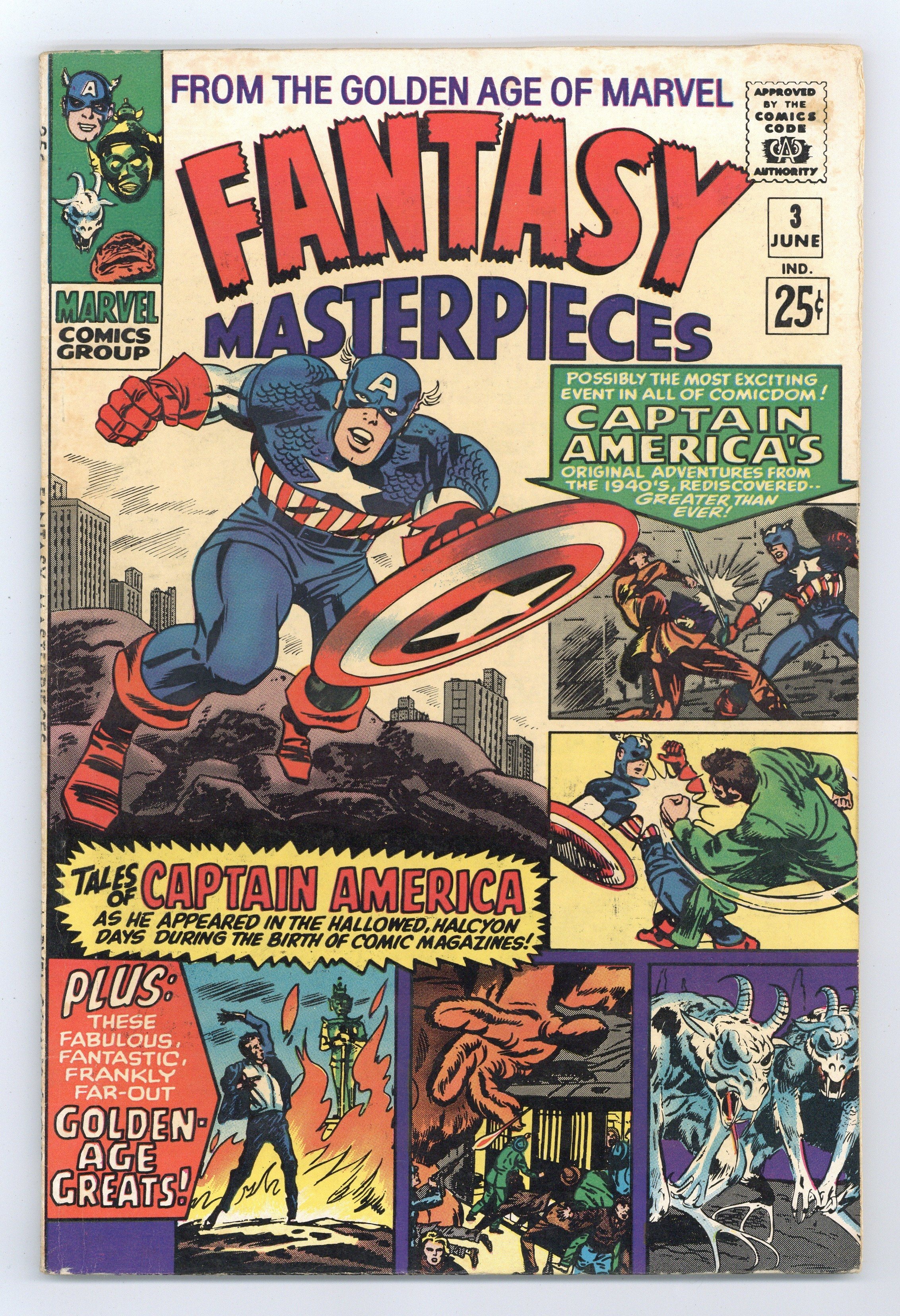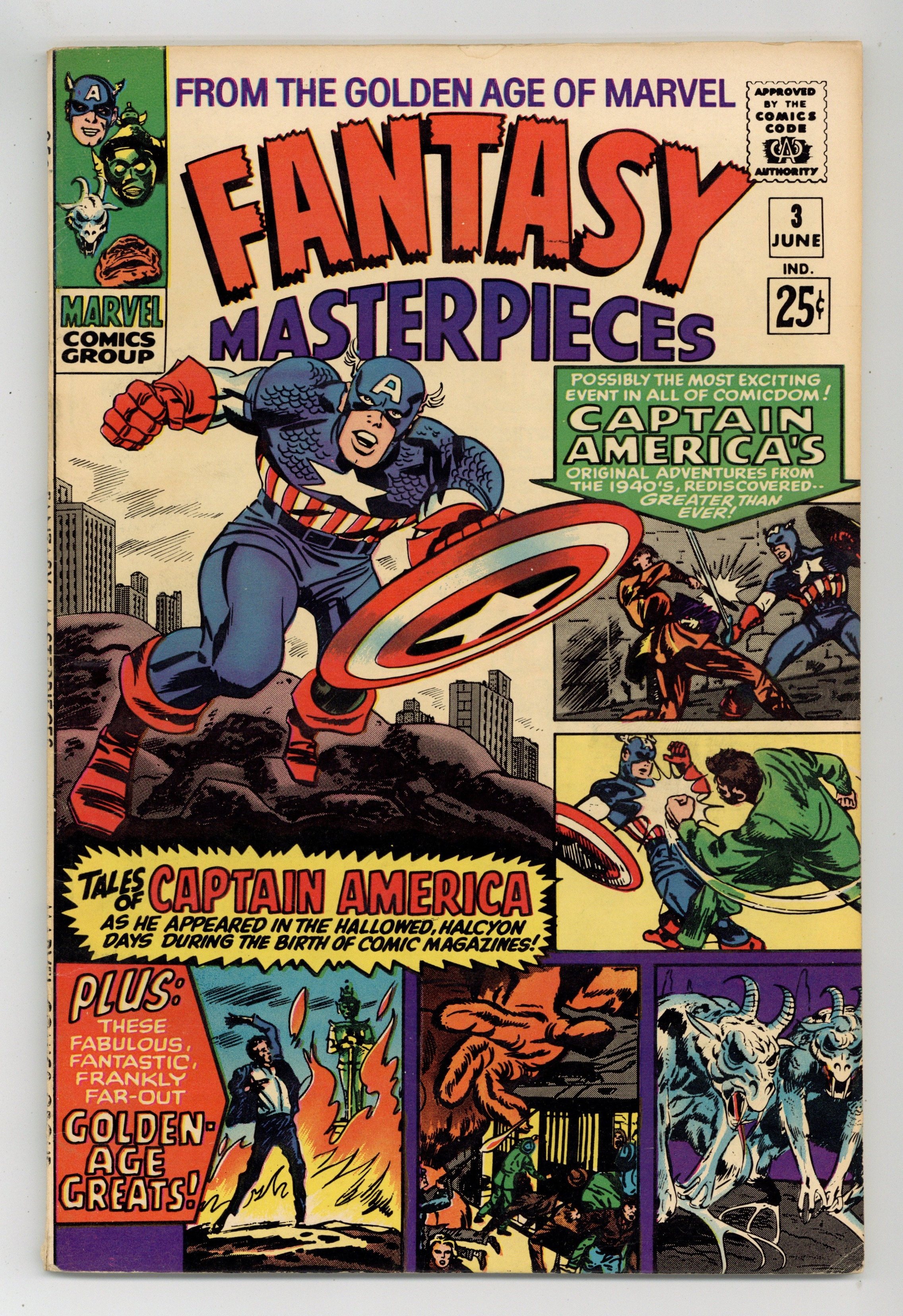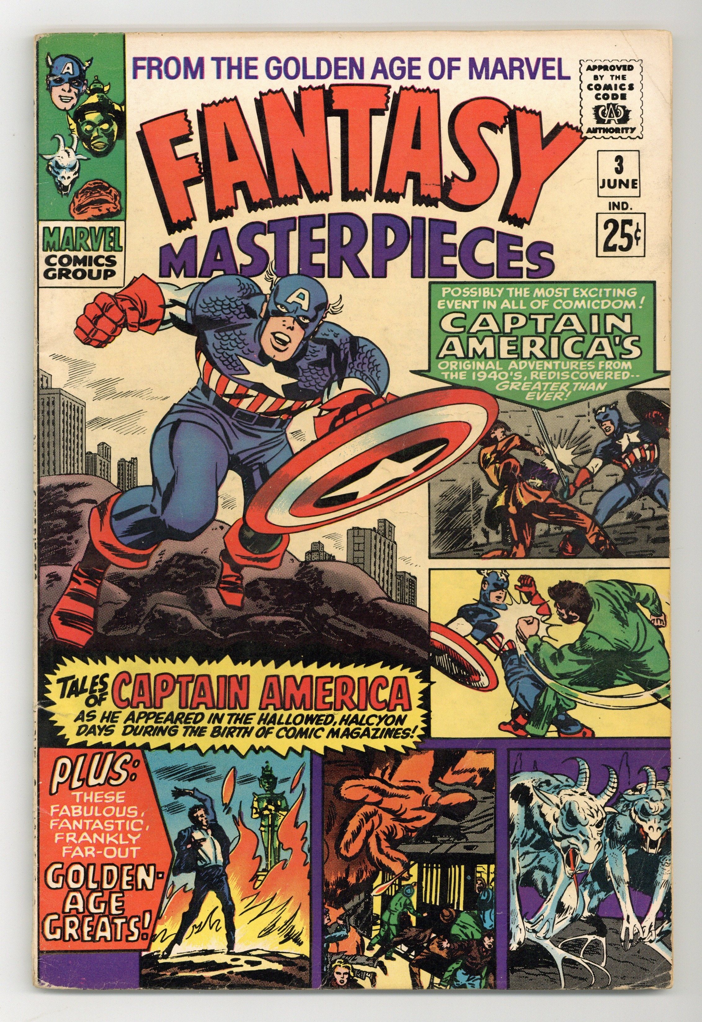 $7.30Cover pencils by Jack Kirby (Captain America), Gene Colan, and Don Heck, inks by Frank Giacoia (Captain America), Gene Colan, and Don Heck. Reprints. "The Hunchback of Hollywood and the Movie Murder" from Captain America Comics #3, script by Joe Simon and Jack Kirby, pencils by Jack Kirby, inks by Bernie Klein and George Roussos; Death and terror lurk behind the scenes of a Hollywood movie set as Cap and Bucky hunt a hunchback madman, whose bloody hand seeks to stop the grinding cameras from filming the truth for a liberty loving public. "I Am the Prisoner of the Voodoo King!" from Journey Into Mystery #82, art by Gene Colan; A criminal being brought to prison from a jungle outpost escapes into the jungle; He happens upon a tribe worshipping a gold idol and steals it. "Beware the Uboong!" from Strange Tales #100, art by Don Heck; Americans flee Uranus due to ferocious wildlife; The Soviets take the opportunity to land their own expedition, but because they ignore the American warnings they do not realize that the sheep-like creatures in the mountains are the deadly Uboongi. "Bruttu" from Tales of Suspense #22, art by Don Heck; An often-bullied scientist accidentally transforms himself into a monster, and is attacked when he cant make himself understood; In his new form he discovers that the girl hed thought out of his league really loves him, and manages to make himself human again. "I Saw the End of the World" from Strange Tales #73, art by Steve Ditko; A scientist builds a time machine and discovers that time is a loop with all events repeating themselves endlessly for eternity. "The Weird Case of the Pludering Butterfly and the Ancient Mummies!" from Captain America Comics #3, script by Joe Simon and Jack Kirby, pencils by Jack Kirby, inks by Reed Crandall; Laughing at law and order, the Butterfly loots a museum of its priceless treasures until Captain America and Bucky steps in to clip his wings. 68 pgs., full color. Cover price $0.25.