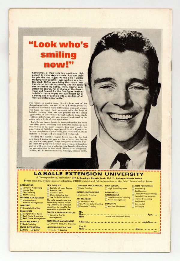 $48.00Cover art by Neal Adams. "Night of the Nether-Spawn!", script by Steve Gerber, pencils by Rich Buckler, inks by Jim Mooney; Man-Thing battles Thog the Nether-Spawn, who makes his first appearance; Jennifer Kale also makes her first appearance; Steve Gerber's first full story as a professional writer. "The Spider Waits," art by Fred Kida; Sven's childhood fear of spiders turns to enjoyment as he kills them indiscriminately at his factory cleaning job; He meets a woman who is actually a human spider who lures him into her web, literally. 36 pgs., full color. Cover price $0.20.