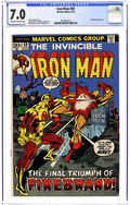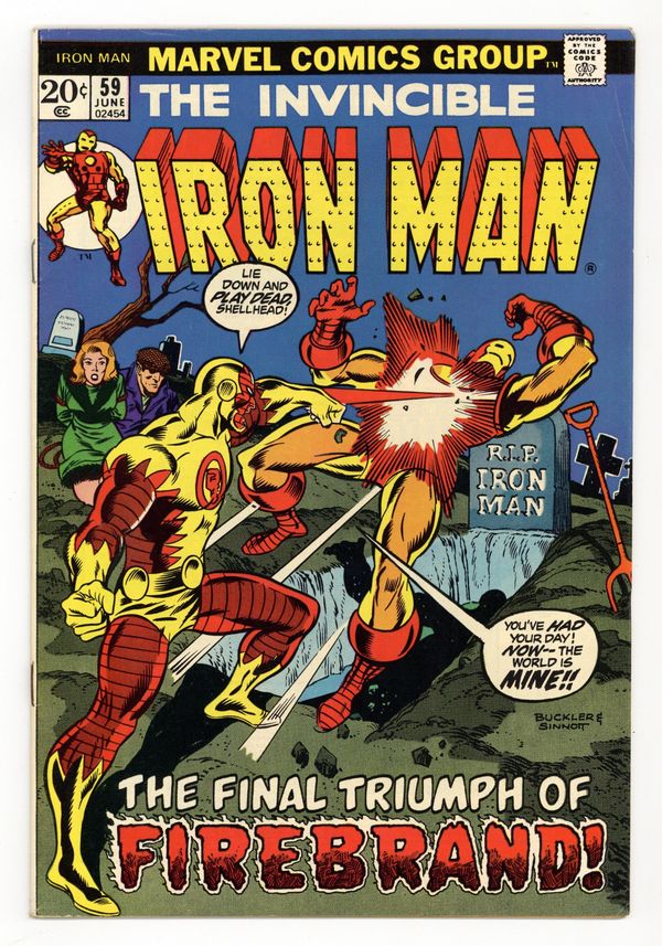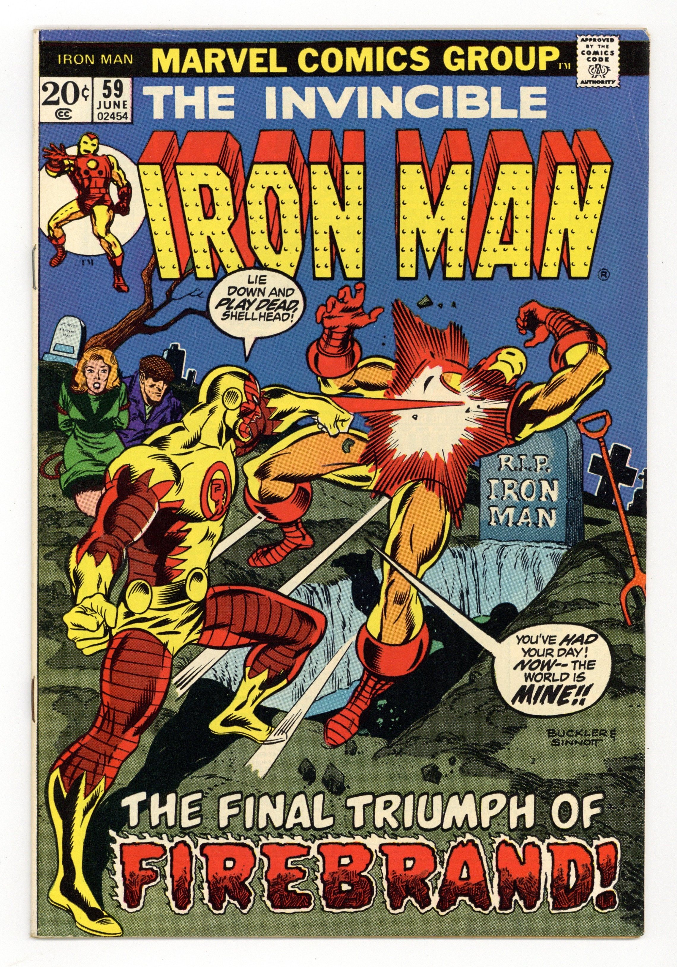 "A Madness in Motown!" Story by Mike Friedrich. Art by George Tuska and Mike Esposito. Cover by Rich Buckler and Joe Sinnott. Tony Stark takes a business trip to Detroit to oversee a stock transfer involving the shares of Roxanne Gilbert, but Tony does not know that Roxanne's brother is...Firebrand! Iron Man and Firebrand settle their differences in a grave yard. Meanwhile, Marianne Rodgers is admitted to a sanitarium. 32 pages Cover price $0.20.