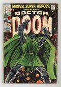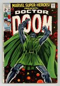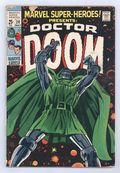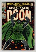 $250.00Giant-size issue. Doctor Doom stars in "This Man, This Demon!" Script by Larry Lieber and Roy Thomas, pencils by Lieber and Frank Giacoia, inks by Vince Colletta. Brief Fantastic Four appearance. The remainder of the issue contains Golden Age reprints: the Sub-Mariner by Bill Everett ("The Sub-Mariner Meets a New Enemy...Fire!"); and, from Young Men 24, the Human Torch, Captain America ("Back From the Dead!"), and the Sub-Mariner. This issue also contains a one-page ad for a Starhawk story that never appeared in Marvel Super-Heroes. John Buscema cover pencils. 68 pages, full color. Cover price $0.25.