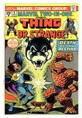 Tags: Doctor Strange, Thing (Ben Grimm)$10.50Doctor Strange guest stars in "Death-Song of Destiny!" Script by Steve Gerber, pencils by George Tuska, inks by Mike Esposito. A giant rat is running amuck in downtown New York and only the Thing and the Master of Mystic Arts, Doctor Strange, can stop its rampage before it's too late. The letters page contains a sketch by Dave Cockrum and Marvel Value Stamp # 47 (the Green Goblin by Gil Kane). Jim Starlin cover pencils. Cover price $0.25.