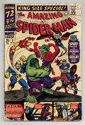 $105.00Cover pencils by John Romita and Steve Ditko, inks by Mike Esposito and Steve Ditko. Spidey faces the Avengers and the Hulk in a new 21-page story, "To Become an Avenger!", script by Stan Lee, layouts by John Romita Sr., pencils by Don Heck, inks by Mickey Demeo; The Avengers decide to ask Spider-Man to join the team but first he has to complete a test to prove himself; Reprinted in Marvel Tales # 181. The test is to capture the Hulk. Turning Point, script by Stan Lee, art by Steve Ditko; Betty's brother has gotten himself into trouble with gambling debts and Betty is forced to help in Doc Ock's plot to break Blackie Gaxton out of prison to keep her sibling alive; Spider-Man interrupts the escape and Blackie shoots Bennett during the conflict; reprinted from Amazing Spider-Man 11. Unmasked by Dr. Octopus, script by Stan Lee, art by Steve Ditko; Peter has the 24 hour flu when Doc Ock captures Betty Brant in hopes of luring Spider-Man into battle; Ock beats the sick web-head and unmasks him, but everyone thinks it is just Peter trying to be brave by impersonating Spidey; reprinted from Amazing Spider-Man 12. 76 pgs., full color. Cover price $0.25.