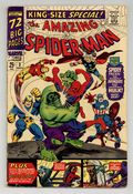 $100.00Cover pencils by John Romita and Steve Ditko, inks by Mike Esposito and Steve Ditko. Spidey faces the Avengers and the Hulk in a new 21-page story, "To Become an Avenger!", script by Stan Lee, layouts by John Romita Sr., pencils by Don Heck, inks by Mickey Demeo; The Avengers decide to ask Spider-Man to join the team but first he has to complete a test to prove himself; Reprinted in Marvel Tales # 181. The test is to capture the Hulk. Turning Point, script by Stan Lee, art by Steve Ditko; Betty's brother has gotten himself into trouble with gambling debts and Betty is forced to help in Doc Ock's plot to break Blackie Gaxton out of prison to keep her sibling alive; Spider-Man interrupts the escape and Blackie shoots Bennett during the conflict; reprinted from Amazing Spider-Man 11. Unmasked by Dr. Octopus, script by Stan Lee, art by Steve Ditko; Peter has the 24 hour flu when Doc Ock captures Betty Brant in hopes of luring Spider-Man into battle; Ock beats the sick web-head and unmasks him, but everyone thinks it is just Peter trying to be brave by impersonating Spidey; reprinted from Amazing Spider-Man 12. 76 pgs., full color. Cover price $0.25.