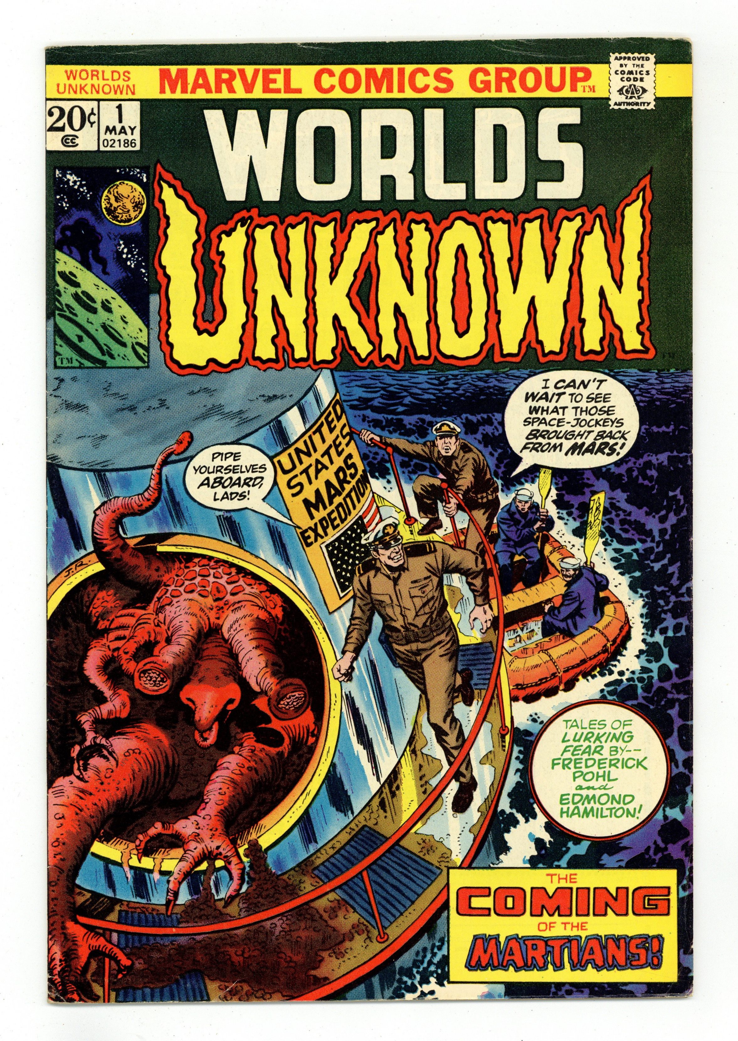 $19.00Cover by John Romita. Stories by Gerry Conway, Gil Kane and unknown. Art by Ralph Reese, Gil Kane, Angelo Torres and Mike Esposito. Tales of lurking fear! Featuring: "The Day after the Day the Martians Came" by Gerry Conway and Ralph Reese (adapted from the story by Frederik Pohl); "He That Hath Wings" by Gil Kane and Mike Esposito (adapted from the Edmond Hamilton story that appeared in July 1938 in Weird Tales (1923-1985 Popular Fiction) Pulp 1st Series Vol. 32 #1); and "Nightmare at Noon" with art by Angelo Torres, reprinted from Astonishing (1951 Marvel/Atlas) #54. Plus: editorial by Roy Thomas about science fiction in comics and future adaptations. 32 pages, full color. Cover price $0.20.