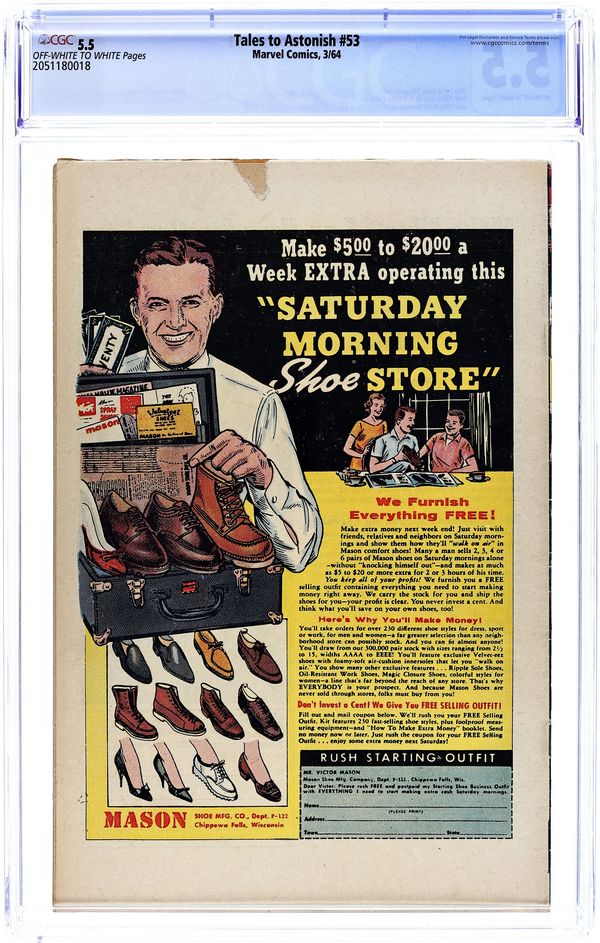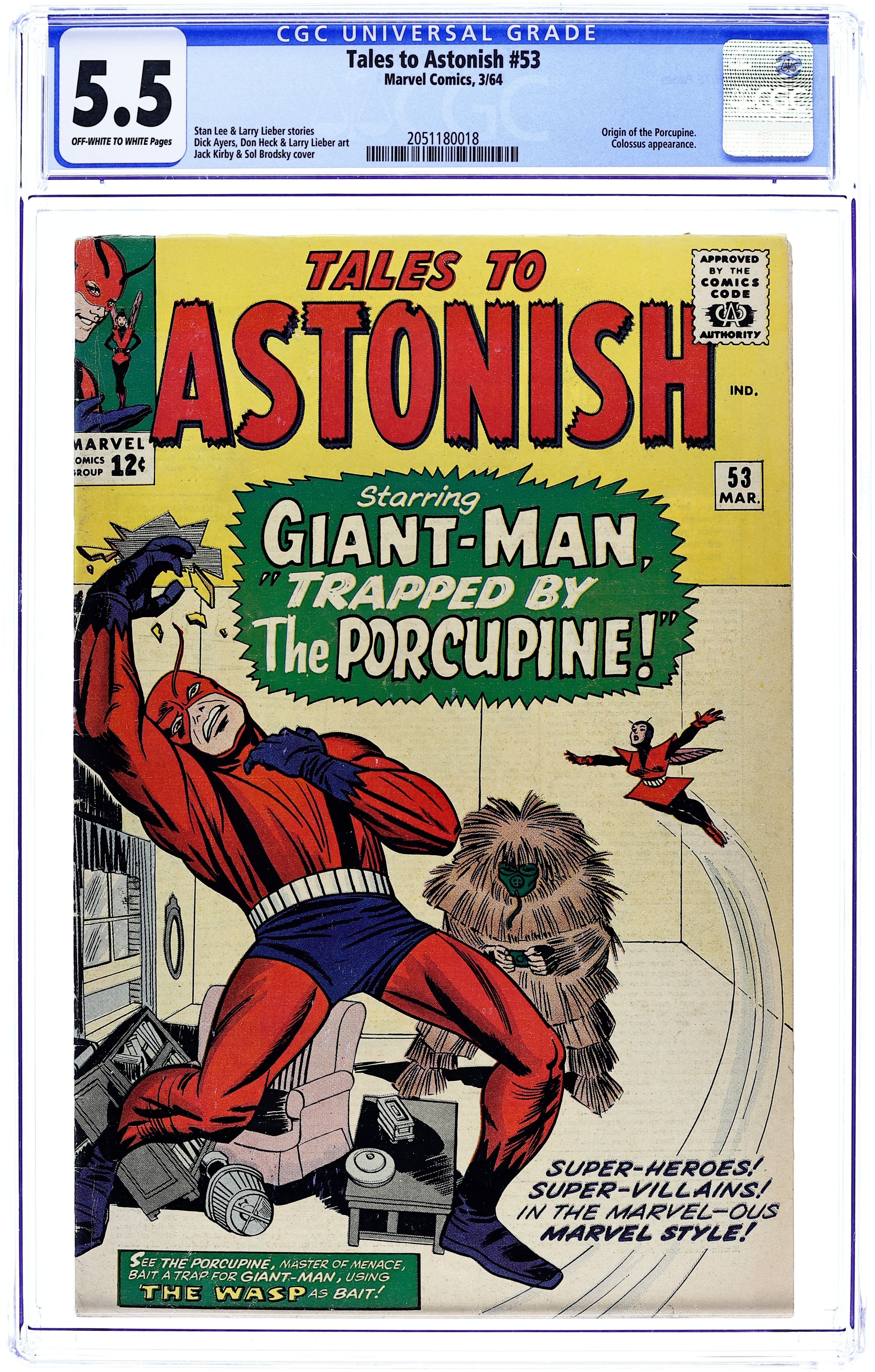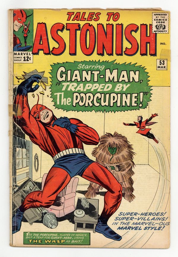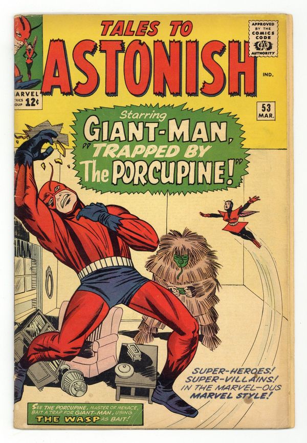 Cover by Jack Kirby and Sol Brodsky. Trapped by the Porcupine!, script by Stan Lee, art by Dick Ayers; The Porcupine uses Giant-Man's fan club to attack him and then he captures the Wasp. The Clock text story. When Wakes the Colossus!, script by Stan Lee and Larry Lieber, art by Larry Lieber and Don Heck; An alien warlord builds a giant statue to intimidate the superstitious, but it comes to life and takes the side of the rebels against him. 36 pgs., full color. $0.12. Cover price $0.12.