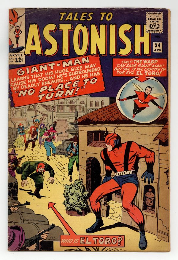 Tags: Marvel Legacy Numbering: Hulk (part 54)$22.00Cover by Jack Kirby and Dick Ayers. No Place to Hide!, script by Stan Lee, art by Don Heck; Santo Rico has elected a communist president, El Toro; Giant-Man and the Wasp are sent to prove that the election was tampered with. The Treasure text story. There Were Five Frightened Men...!, script by Stan Lee and Larry Lieber, art by Larry Lieber and Paul Reinman; An art thief steals a painting of frightened men, only to be trapped in it as one of them. Ad for Fantastic Four #25 and the launch of Daredevil. Conquest!, script by Stan Lee and Larry Lieber, art by Larry Lieber and Sol Brodsky; A king invades another world to win glory, but the costs of occupation make him unpopular. 36 pgs., full color. $0.12. Cover price $0.12.