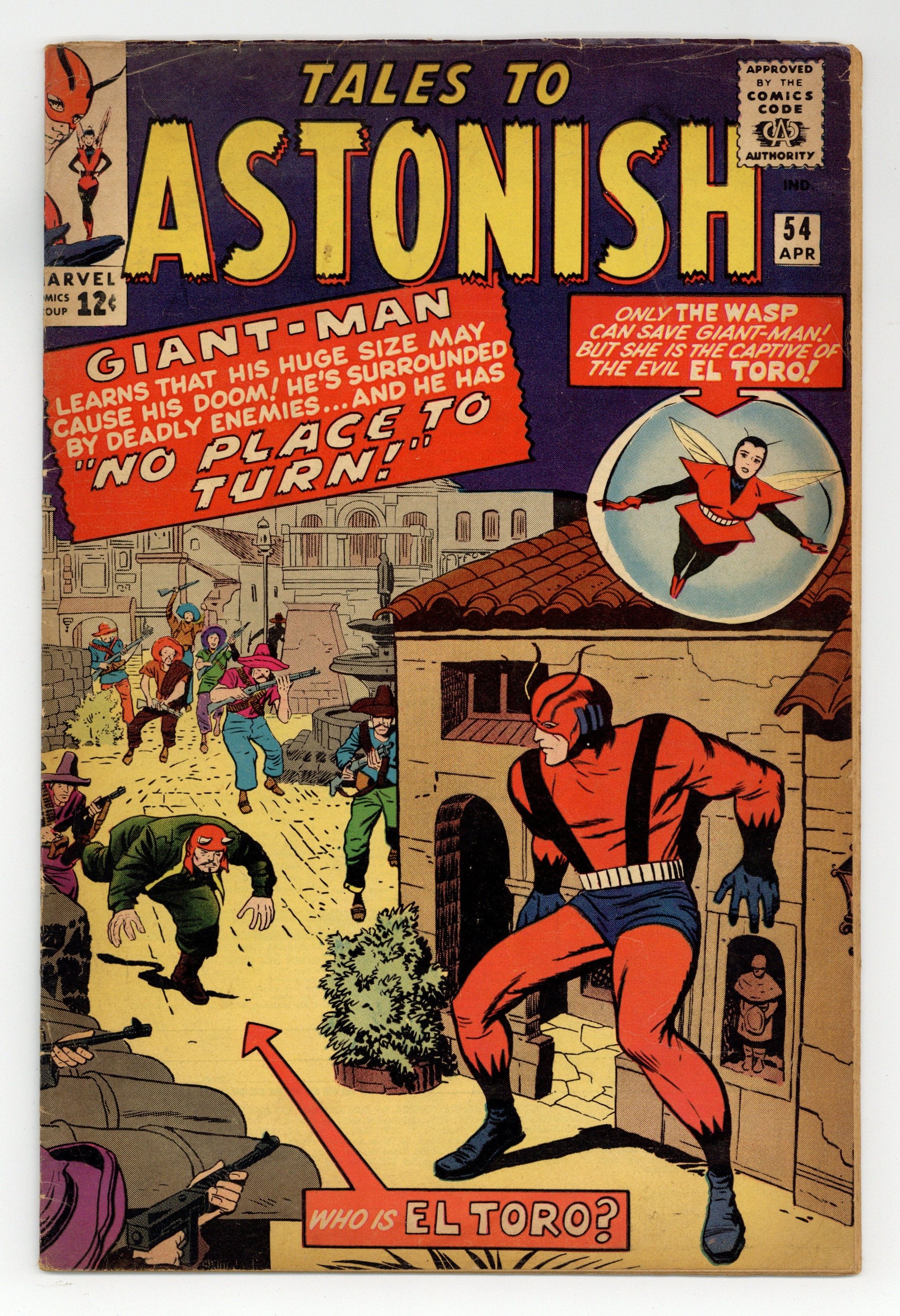 Cover by Jack Kirby and Dick Ayers. No Place to Hide!, script by Stan Lee, art by Don Heck; Santo Rico has elected a communist president, El Toro; Giant-Man and the Wasp are sent to prove that the election was tampered with. The Treasure text story. There Were Five Frightened Men...!, script by Stan Lee and Larry Lieber, art by Larry Lieber and Paul Reinman; An art thief steals a painting of frightened men, only to be trapped in it as one of them. Ad for Fantastic Four #25 and the launch of Daredevil. Conquest!, script by Stan Lee and Larry Lieber, art by Larry Lieber and Sol Brodsky; A king invades another world to win glory, but the costs of occupation make him unpopular. 36 pgs., full color. $0.12. Cover price $0.12.