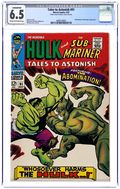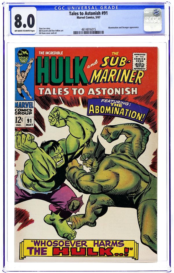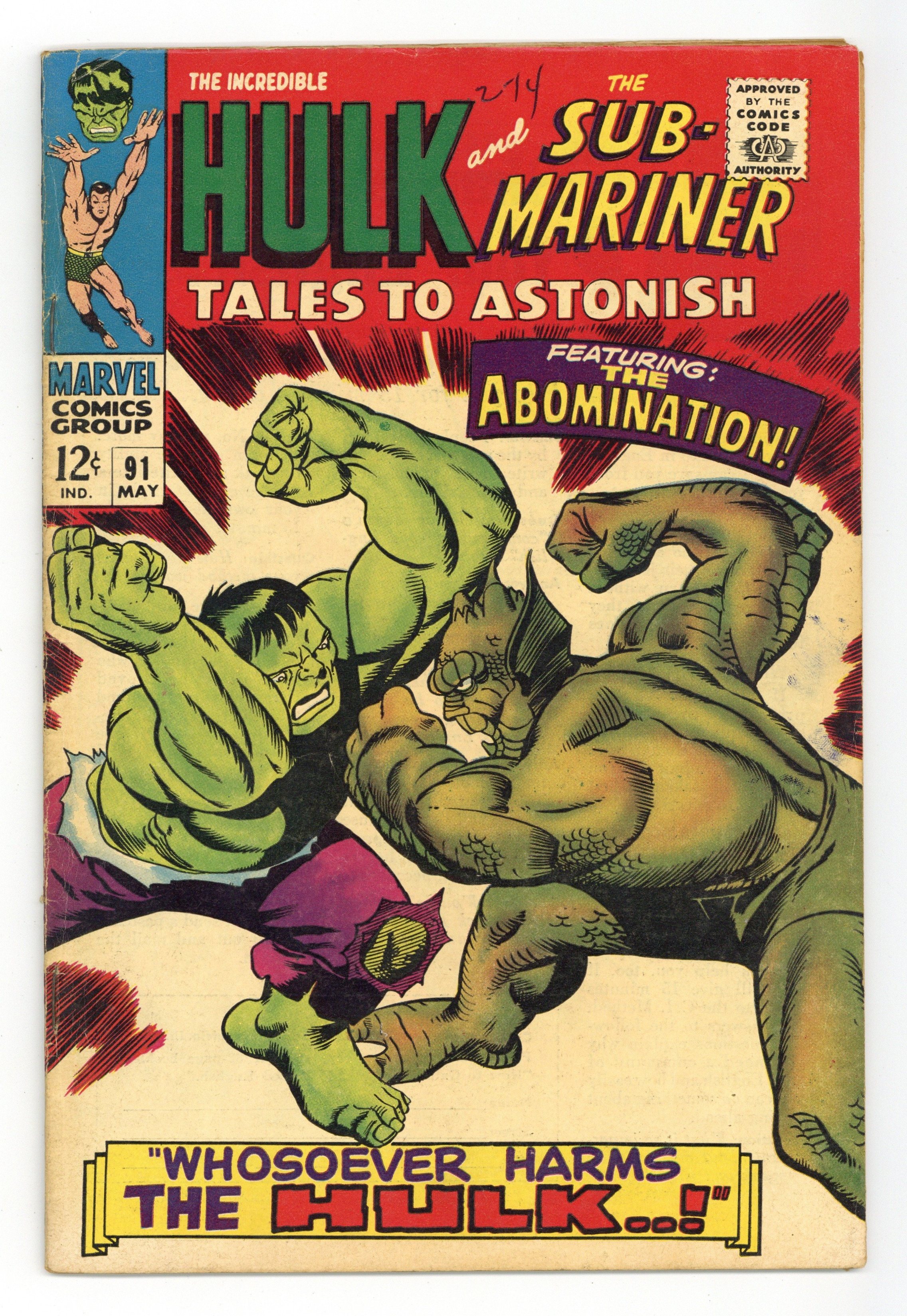 Cover by Gil Kane. Outside the Gates Waits..Death!, script by Stan Lee, art by Bill Everett and Dan Adkins; As the new ruler of Atlantis, Byrrah has Namor arrested and sent to the dreaded Inferno Isle; Namor battles the lava monster that lives there and returns to Atlantis to seek his vengeance; Meanwhile, back in the undersea kingdom, Dorma has found Byrrah's hypnosis machine that won him the throne and uses it to turn the Atlantean allegiance back to Namor. Whosoever Harms the Hulk..!, script by Stan Lee, art by Gil Kane; Ross and his men try to revive the Hulk after his beating by the Abomnation; Returning from the brink of death, Hulk is about to leave when the pleading Rick Jones causes him to transform back to Banner; Banner uses his knowledge to lure Abomination back to Gamma base with Betty in tow; Hulk and Abomination clash once again; Watching from a distant galaxy, the Stranger realizes that the Abomination is a much better ally than the Hulk and zaps him to his side, ending the battle. 36 pgs., full color. $0.12. Cover price $0.12.