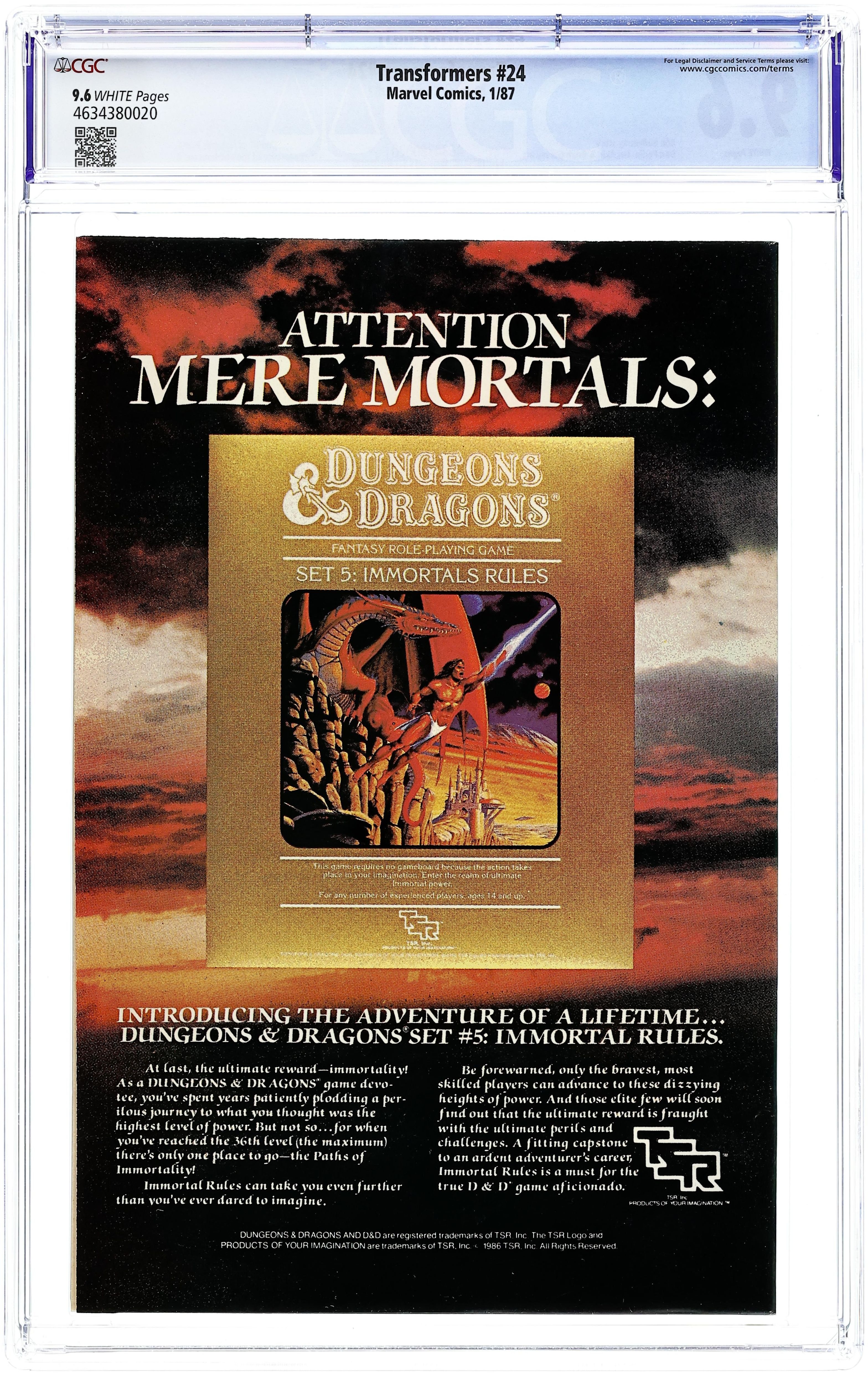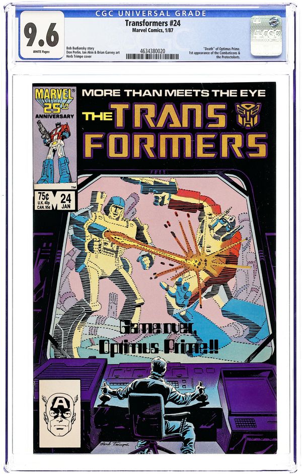First Printing. Direct Edition. The Autobots and the Decepticons engage in a deadly battle in Multi-World, a computer role-playing game created by Ethan Zachary. The stakes: possession of an all-important hydrothermocline, an energy generator in "Afterdeath." Script by Bob Budiansky and art by Don Perlin & Ian Akin & Brian Garvey. Cover by Herb Trimpe. Cover price $0.75.