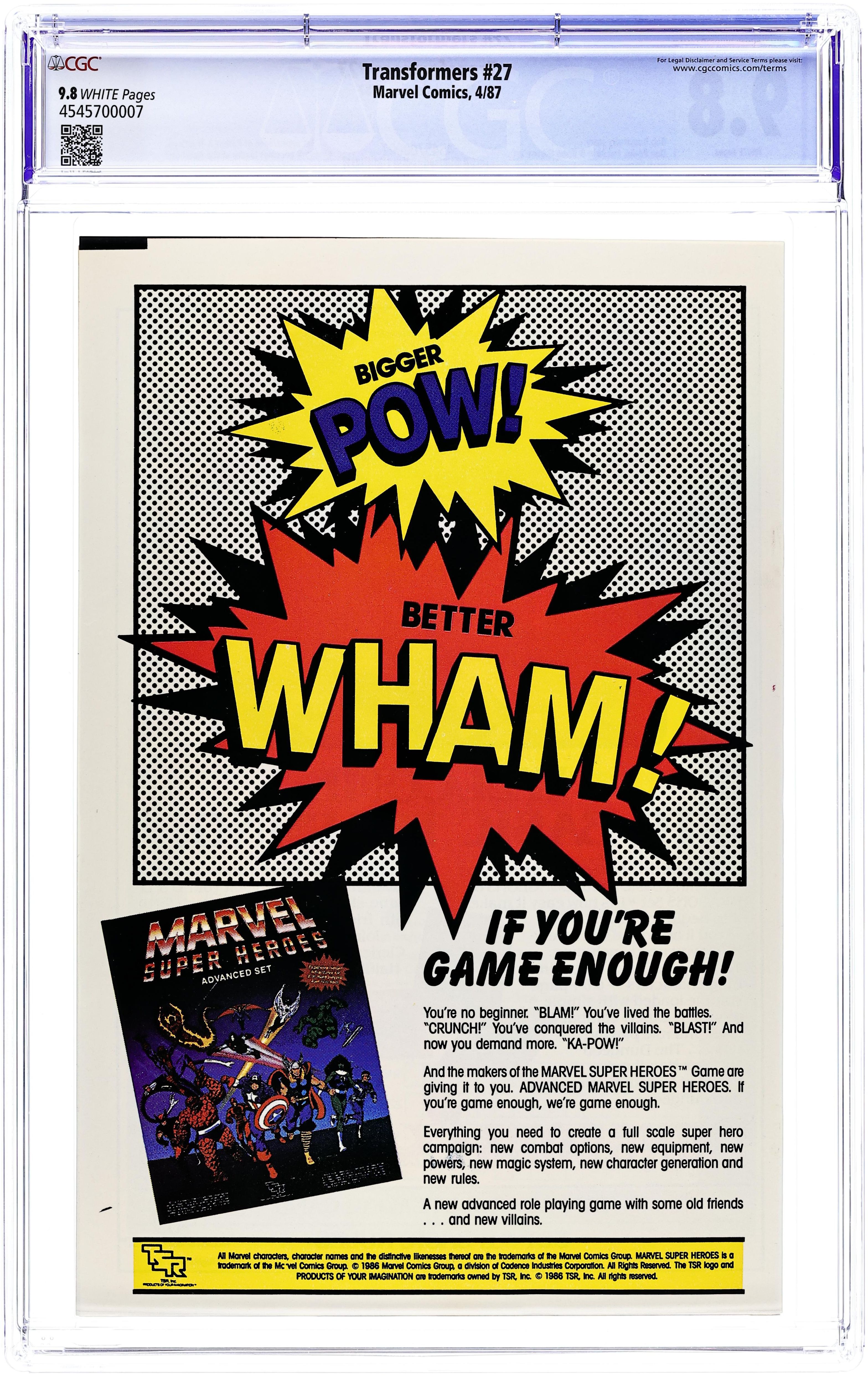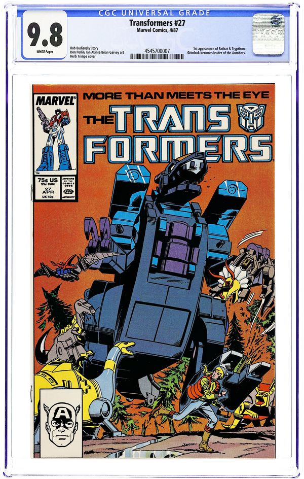 First Printing. Direct Edition. As the Autobots struggle in picking a new leader and the Decepticons try to maintain their dimensional bridge, the Dinobots are mistaken for dinosaurs by some paleontology experts in "King of the Hill." Script by Bob Budiansky and art by Don Perlin & Ian Akin & Brian Garvey. Cover by Herb Trimpe. Cover price $0.75.