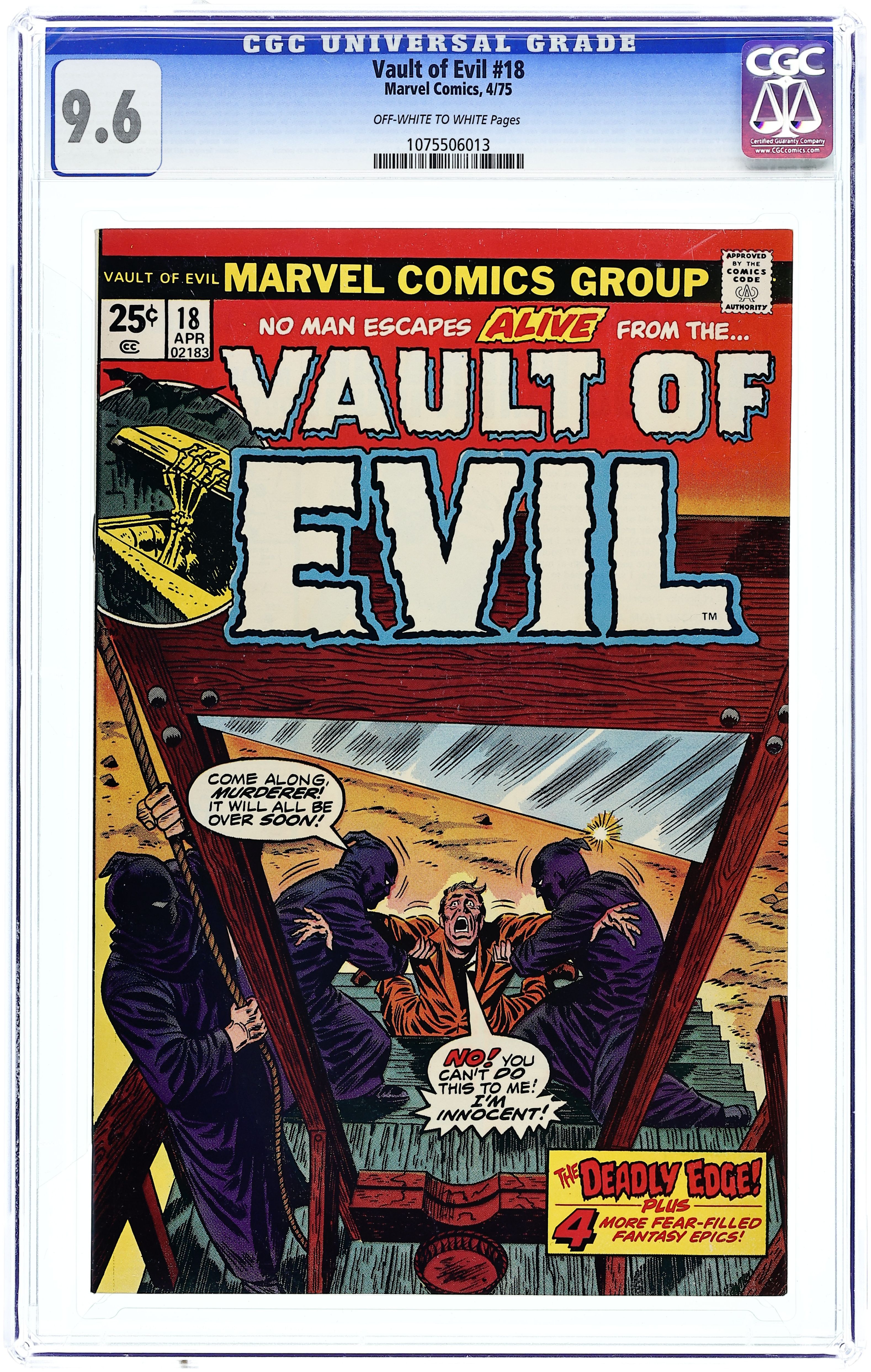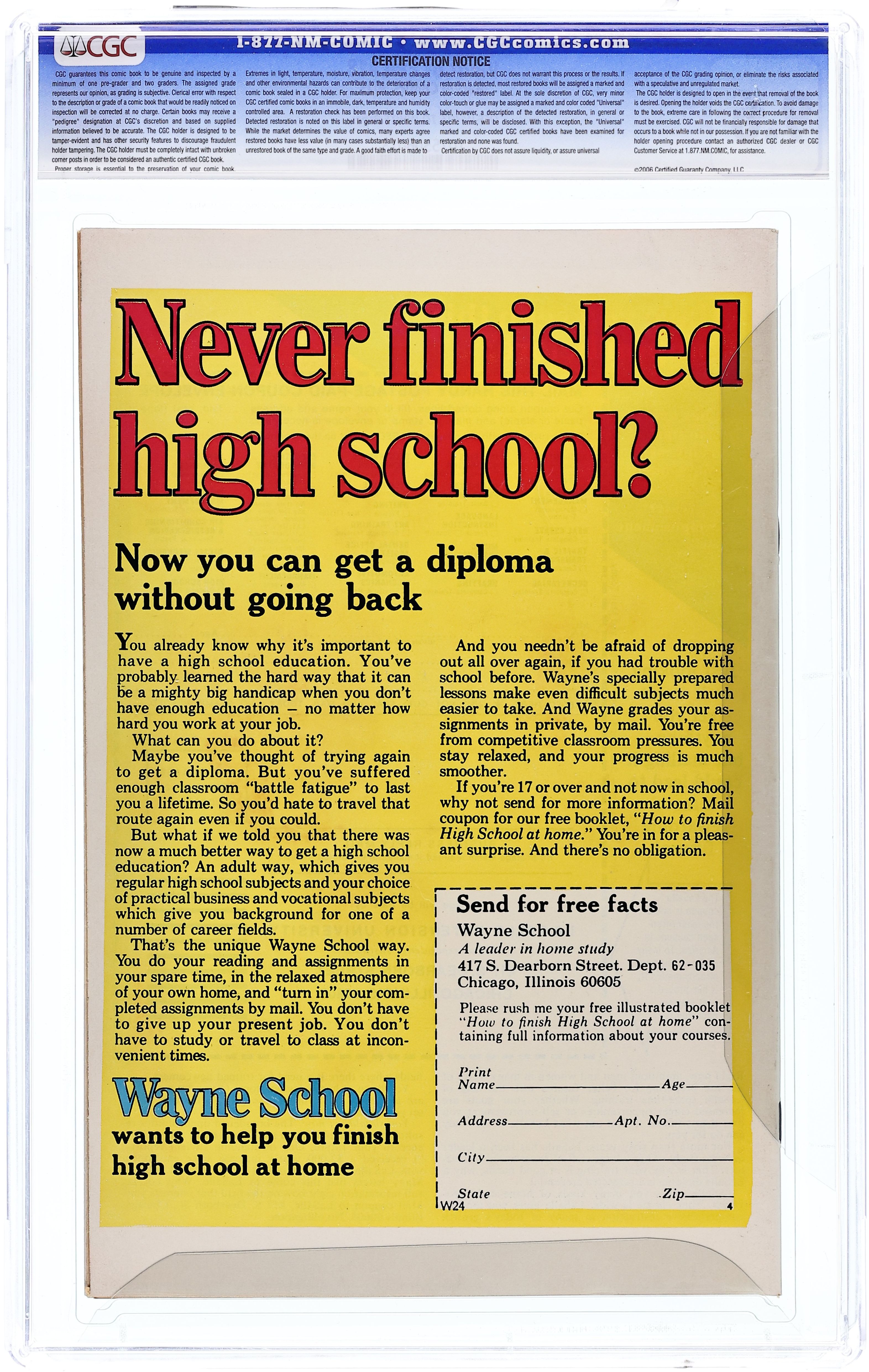 Cover by Ron Wilson and Frank Giacoia. A Coffin for Carlos, pencils by Don Perlin, inks by Abe Simon; A man visits a convicted killer in jail and offers to sell him a pill for five hundred dollars that will make him appear dead in order to cheat the electric chair. No Place to Hide!, art by John Forte; A thief steals a chemical compound from an old man which sends him into the past. What World Is This?, pencils by Ross Andru, inks by Mike Esposito; A thief hiding from his pursuers makes a wish that time would stand still. Mass Murder, art by Robert Q. Sale; A scientist makes use of a duplicator ray to make multiple copies of himself in order to work on a scientific problem, then later destroys the copies. The Perfect Hide-Out, art by Frank Bolle; A masked thief takes refuge in the home of a frail old woman in a wheelchair who is helpless to turn him in to the authorities--or so he thinks. 36 pgs., full color. $0.25. Cover price $0.25.