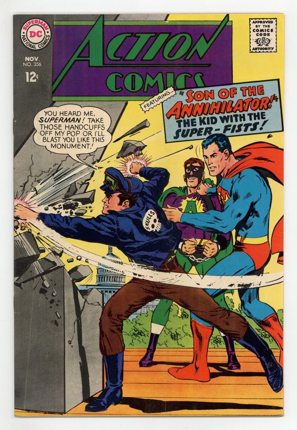 Cover by Neal Adams. "The Son of the Annihilator!", script by Leo Dorfman, art by Wayne Boring; The Annihilator wants to set up a secret identity like Superman, so he "adopts" Pocketbook Pete, a young hoodlum, who decides to use the Annihilator's Kryptonian chemicals to give himself super-powers also. Bomba the Jungle Boy ad. "The Girl of Straw!", script by Cary Bates, art by Jim Mooney; Supergirl worries when she discovers that she is losing her super-powers. Justice League of America ad. 36 Pages, Full Color. $0.12 Cover price $0.12.