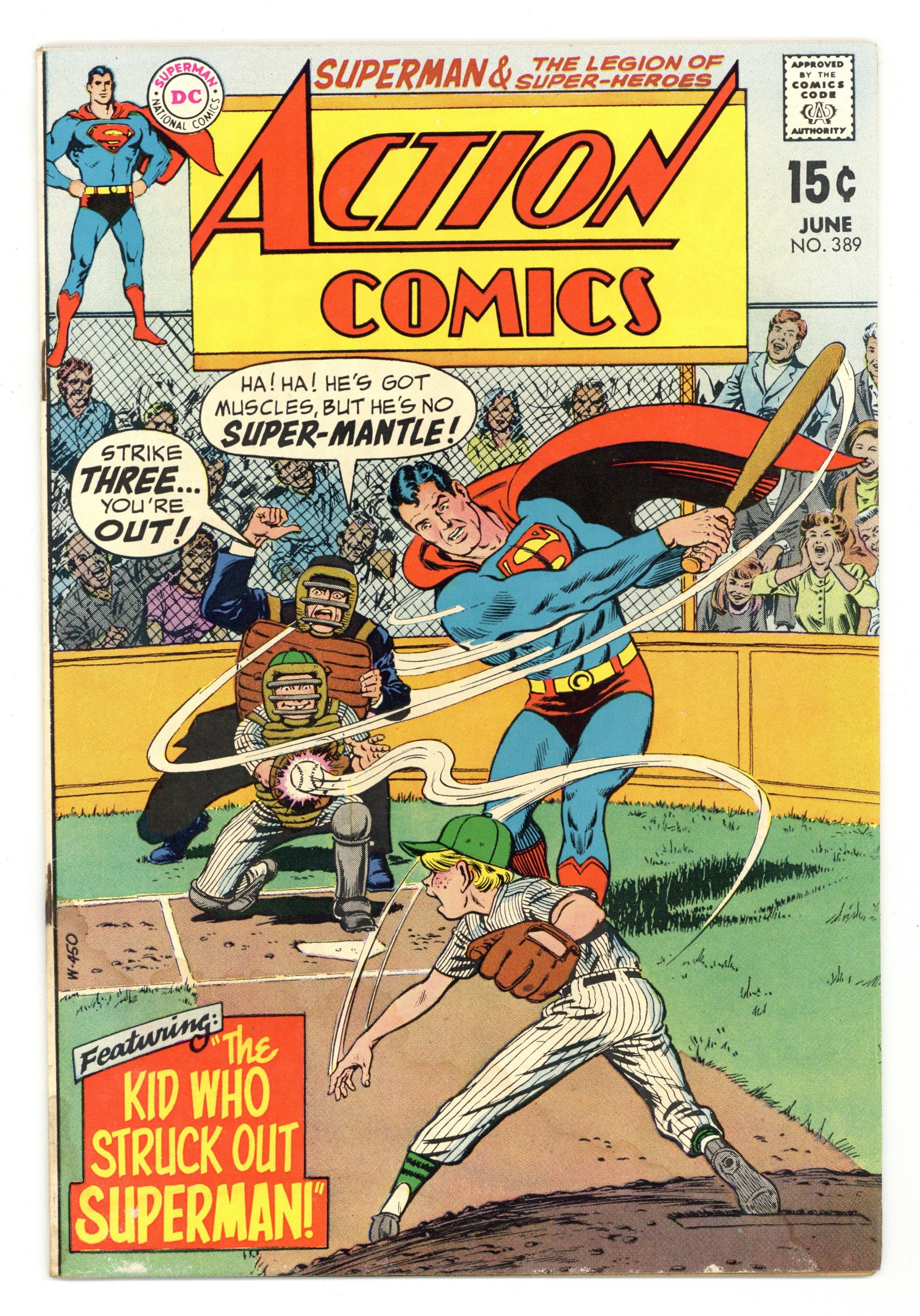Cover pencils by Curt Swan, inks by Murphy Anderson. "The Kid Who Struck Out Superman!", script by Leo Dorfman, pencils by Curt Swan, inks by George Roussos; Superman inexplicably tries out several professional sports, but dismisses them all as boring and unchallenging; It's all a ruse to cover his plan to prevent the alien Slurrans from invading Earth. Superman ad. "The Superman Legend: Rogues Gallery," a two-page feature, presents Lex Luthor, Braniac, Prankster, Mr. Mxyzptlk, Parasite, Toyman, The Puzzler, and the Phantom Zone villians (Jax-Ur, Kru-El, General Zod, & Professor Vakox), art by Murphy Anderson. Tales of the Legion of Super-Heroes backup, "The Mystery Legionnaire!", script by Cary Bates, pencils by Win Mortimer, inks by Jack Abel; The head of the android criminal Klim seeks to reunite with his body and to take his revenge on the Legionnaire who defeated him, but the same team that stopped him before stops him again; Appearances by Jimmy Olsen, Perry White, Klim, Shrinking Violet, Cosmic Boy, and the Chemical King, plus a statue of Babe Ruth. 36 Pages, Full Color. $0.15 Cover price $0.15.