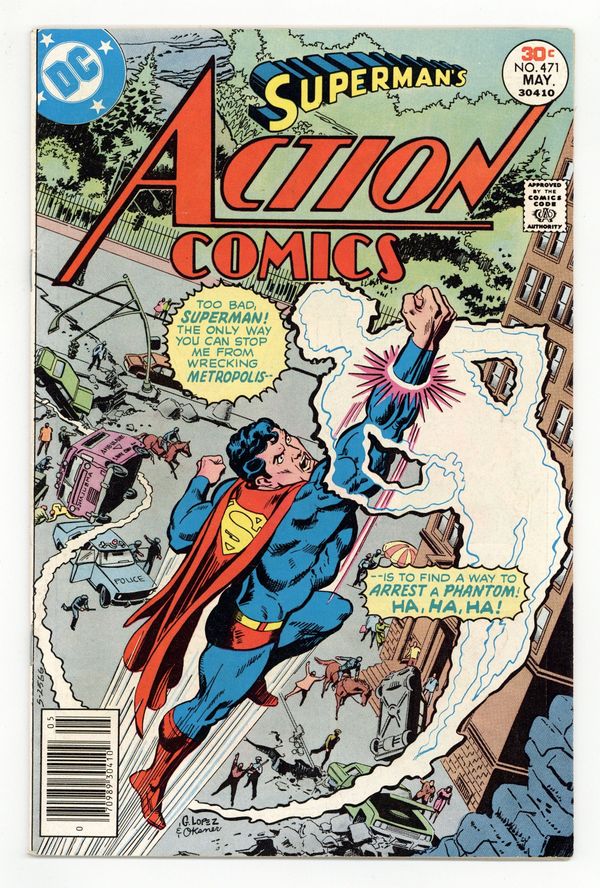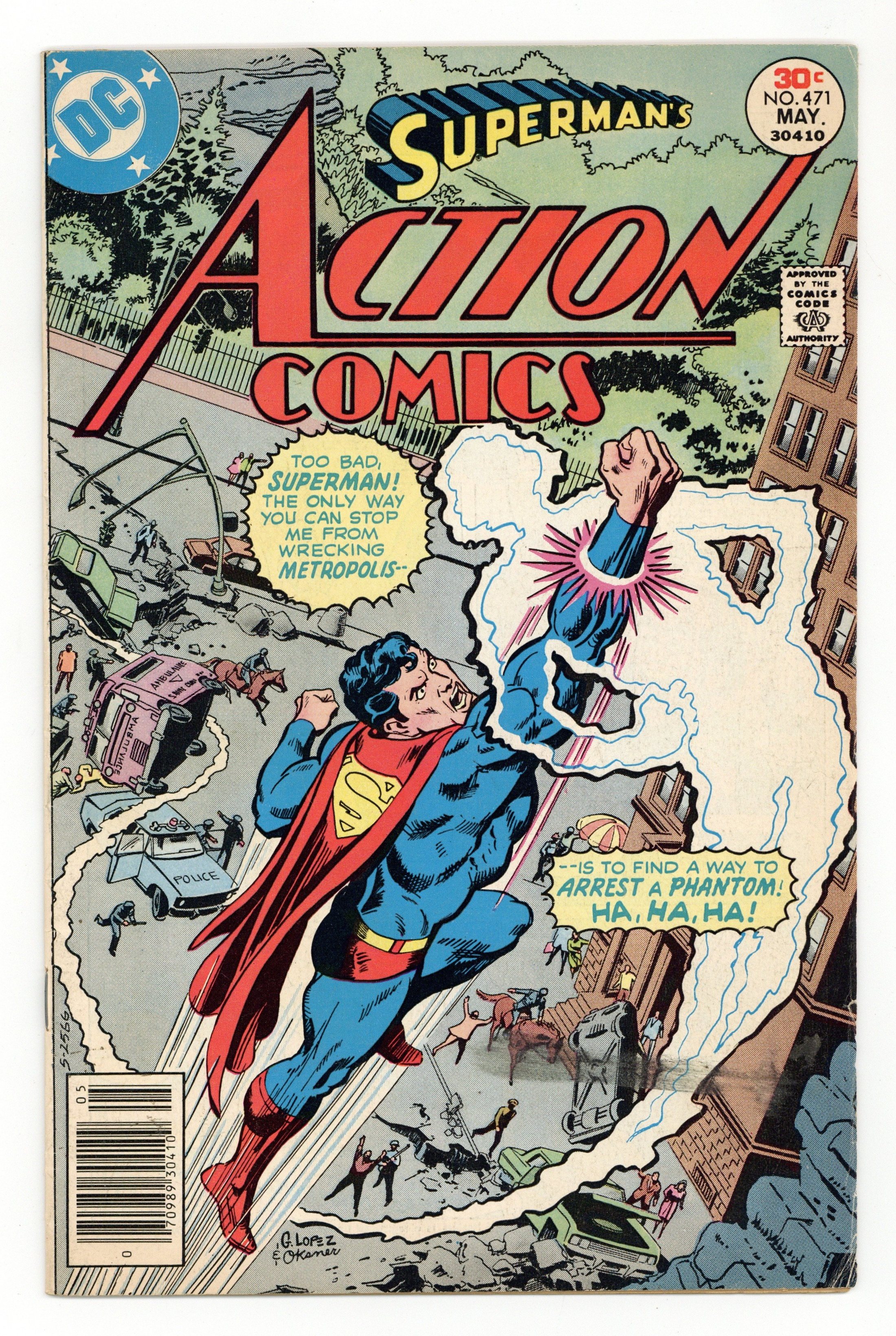 Cover pencils by Jose Luis Garcia-Lopez, inks by Bob Oksner. "One of Our Phantoms Is Missing," script by Cary Bates, pencils by Curt Swan, inks by Tex Blaisdell; Clark Kent returns home to find a strange, elderly man in his apartment; This is Jackson Porter, Clark's new neighbor. Porter claims that he came over to introduce himself and found the door open, but Clark grows suspicious; Later, a strange phantom is seen terrorizing the streets of Metropolis. "The Long Weekend," script by Bill Kunkel, pencils by John Calnan, inks by Tex Blaisdell; Clark Kent is bored and looking for something to do; He meets Harry Davis, a private investigator who mistakes Kent for a man named Lionel Maxwell; He is trying to locate Maxwell to inform him that he stands to inherit a million dollars from a deceased relative. #4 Murray Boltinoff DC Profiles bio by Mike Gold. 36 Pages, Full Color. Cover price $0.30.