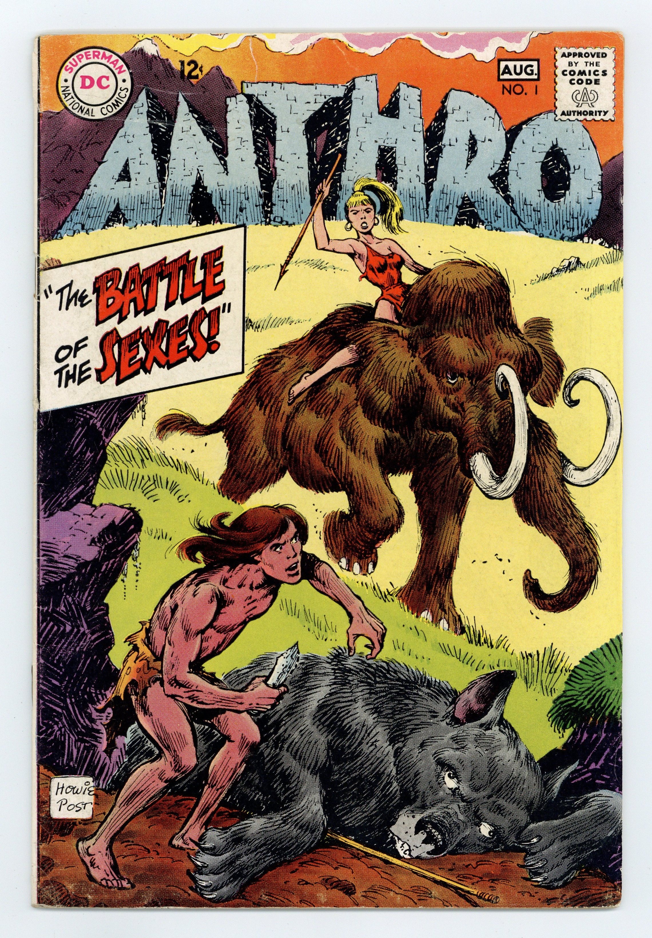 $25.00Written by Howie Post. Art and cover by Howie Post. Lart is crippled. Anthro meets Embra. Ad for Green Lantern #62 and Superman #208, art by Jack Sparling and Neal Adams. Ad for the Batmobile toy manufactured by Corgi Toys, art by Henry Boltinoff. Ad for Batman #203, art by Neal Adams. Article on Anthro by Howie Post. Direct Currents promo, art by Neal Adams. 36 pages, full color. $0.12. Cover price $0.12.