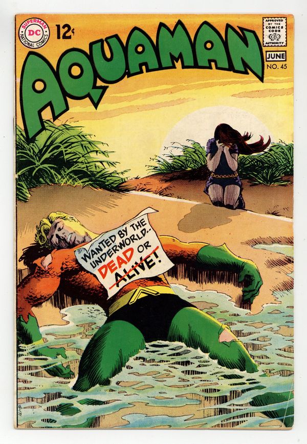 Last 12c cover-priced issue. Cover art by Nick Cardy. Underworld Reward (part 2), script by Steve Skeates, art by Jim Aparo; Mera is found; Aqualad continues battling Bugala. Sea-Saws humor page by Henry Boltinoff. 36 pgs. $0.12. Cover price $0.12.