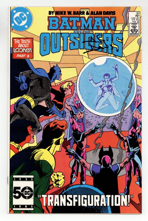 The history of the kingdom of Abyssia is revealed in "The Truth About Looker, Part 3: This Envious Race!" Part 3 of 4, continued from the previous issue. Story concludes next issue. Script by Mike W. Barr, art by Alan Davis. Contains ad for Aquaman mini-series, which Alan Davis was originally slated to draw, but bowed out from due to his editor's request that he work on the higher profile BATO. With the artistic shuffling, Davis' pencils for Aquaman #1 never saw print. Davis cover. Cover price $0.75.