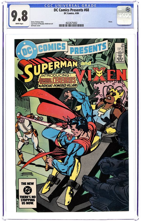Destiny's Children! - Written by Gerry Conway. Art by Curt Swan and Murphy Anderson. Cover by Gil Kane. Vixen seeks Superman's help when a family friend disappears while playing inside a video game. Characters in this issue: Superman [Clark Kent]; Vixen [Mari McCabe]; Admiral Carlton Cerebrus (introduction, villain); Kip; Murph; Eddie; Jimmy Olsen. Statement of Ownership, Management and Circulation in the book states that the average monthly number of sales of the comic is 119,559. 32 pages, full color. Cover price $0.75.