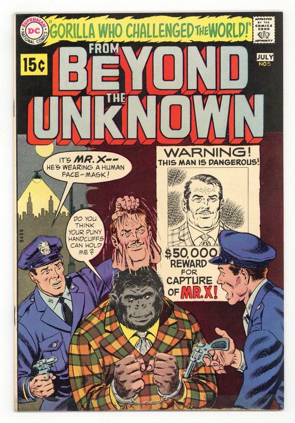 "The Gorilla Who Challenged the World" (script by Edmond Hamilton, art by Sy Barry), "The Jungle Emperor" (script by Hamilton, art by Barry), "The Watchdogs of the Universe!" (script by Otto Binder, pencils by Sid Greene, inks by Joe Giella), and "The Anti-Invasion Machine" (script by Gardner Fox, art by Carmine Infantino). Letter to the editor from comics writer Mike Barr. Cover price $0.15.