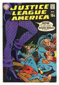 2nd appearance new Green Arrow costume (see Brave and the Bold 85 for the first). Cover pencils by Carmine Infantino, inks by Murphy Anderson. In Each Man There Is a Demon, script by Denny O'Neil, pencils by Dick Dillin, inks by Joe Giella; Black Canary joins the JLA after traveling to Earth 1 from Earth 2; The JLA must battle evil versions of themselves, and Black Canary discovers she's gained the power of a sonic scream as a result of crossing over to Earth-1. Letters to the editor from comics writers Alan Brennert and Martin Pasko. 36 pgs. $0.15. Cover price $0.15.