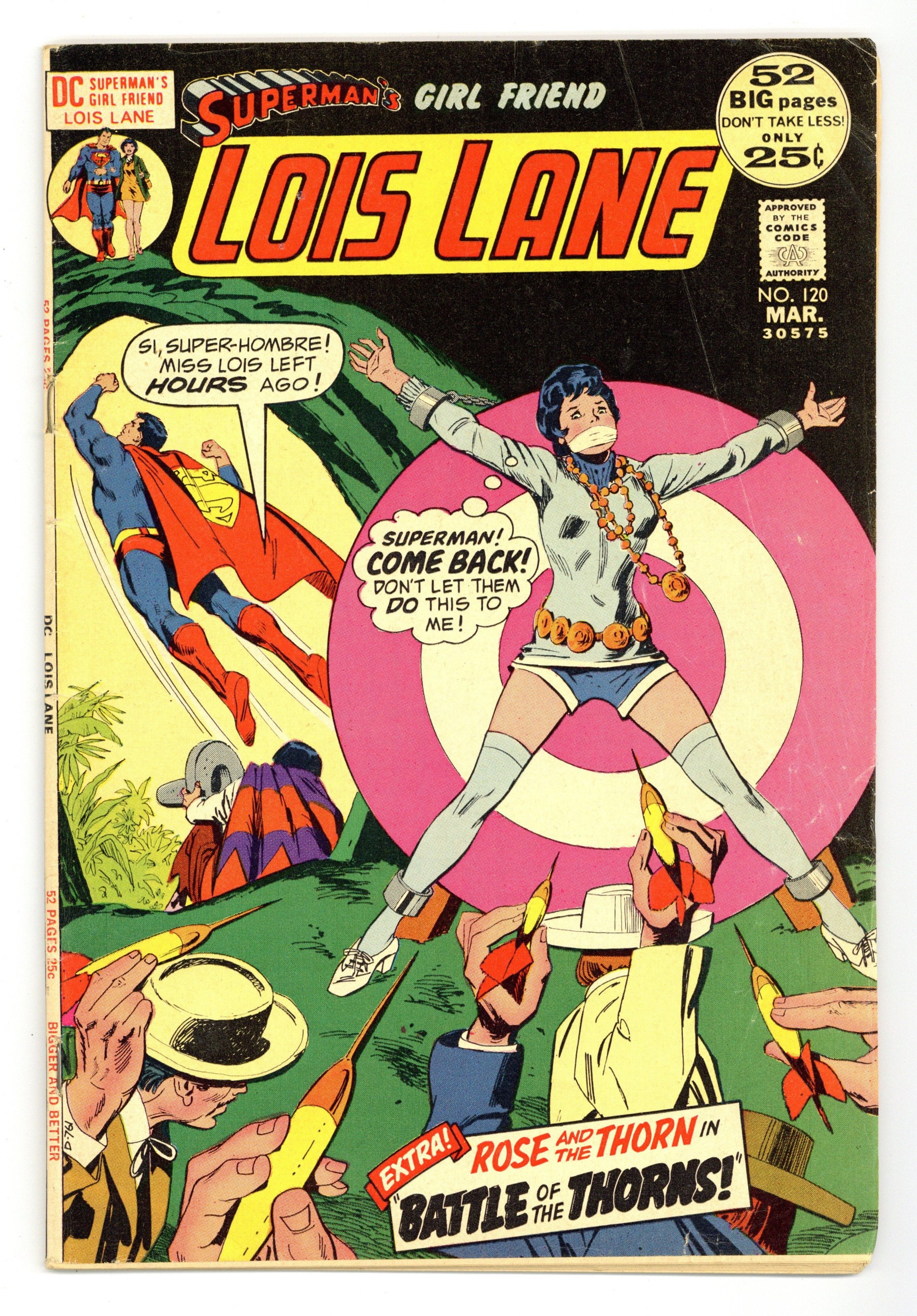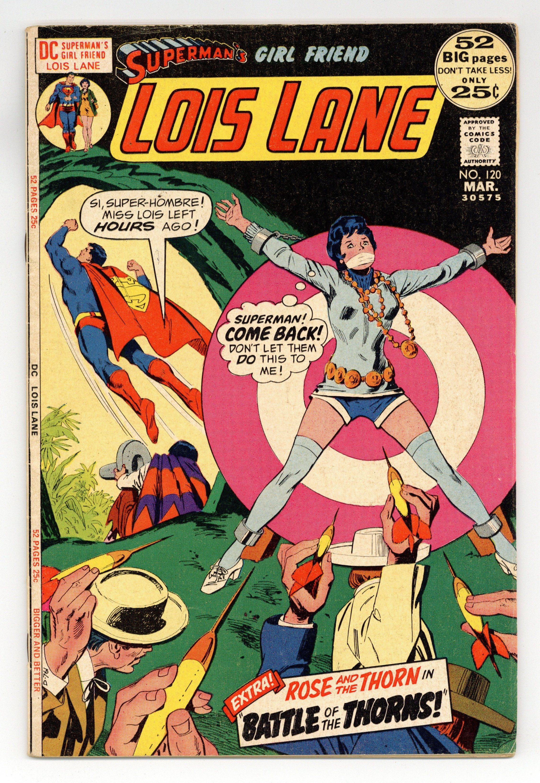 Cover art by Dick Giordano. Who Killed Lucy Lane?, script by Cary Bates and Irene Vartanoff (Plot), pencils by Werner Roth, inks by Vince Colletta and Murphy Anderson (Superman heads); Searching for her missing sister Lucy, Lois finds her diary and learns that Lucy was working for the 100 as a spy, stealing secret plans for a super-weapon. Not All Thorns Come from Roses!, script by Robert Kanigher, pencils by Rich Buckler, inks by Mike Esposito; The Thorn encounters a woman wearing duplicates of her costume and weapons, which were created years ago by costume shop owner Arthur Talbot for the woman's mother to use for criminal purposes. Lois Lane - Volunteer Nurse!, art by Kurt Schaffenberger; Lois falls in love with an injured soldier when she volunteers as a nurses' aide, but he turns out to be a member of the 14 Karat Gang. 52 Pages, Full Color. Cover price $0.25.