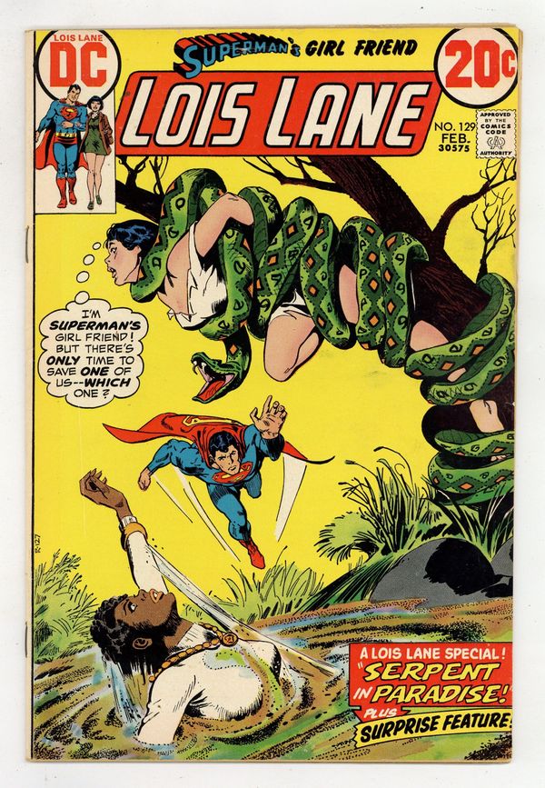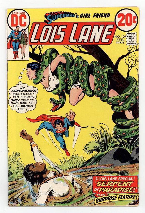 Tags: Superman$18.00Cover art by Bob Oksner. Serpent in Paradise, script by Maxine Fabe, pencils by John Rosenberger, inks by Vince Colletta; Lois and her roommates discover that a guru is really heading a criminal organization. The Million Dollar Night!, pencils by Don Heck, inks by Vince Colletta; Thorn stops some muggers and receives a reward from a reclusive millionaire. 36 Pages, Full Color. Cover price $0.20.