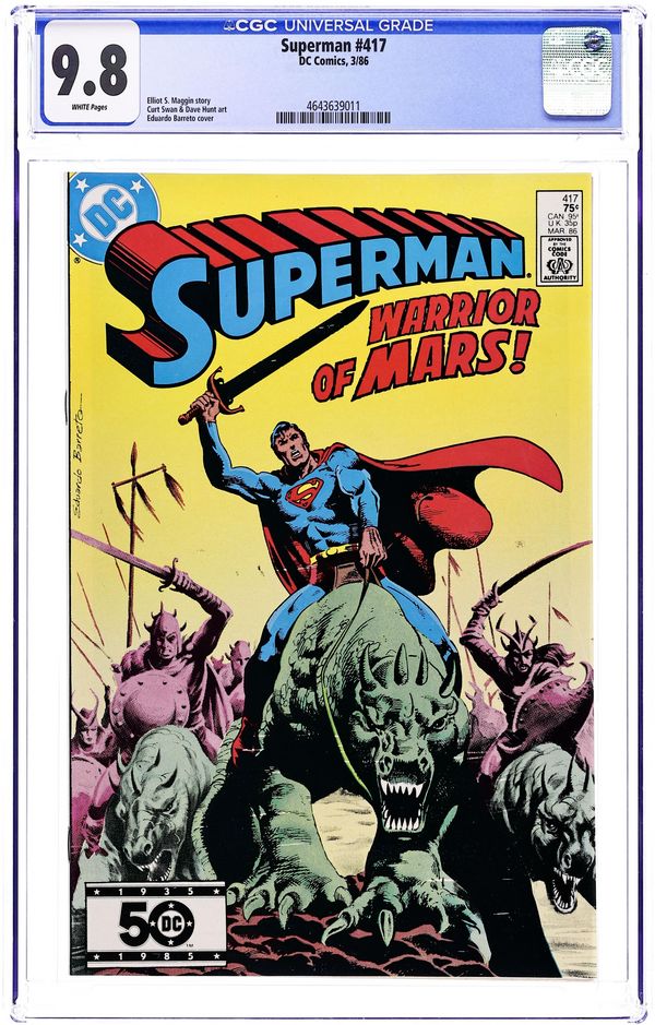 Just imagine - young Kal-El landing on Mars and raised by warlike Martians to invade Earth! Script by Elliot S! Maggin, artistically rendered by Curt Swan and Dave Hunt. Cover by Eduardo Barreto. 36 Pages, Full Color. Cover price $0.75.