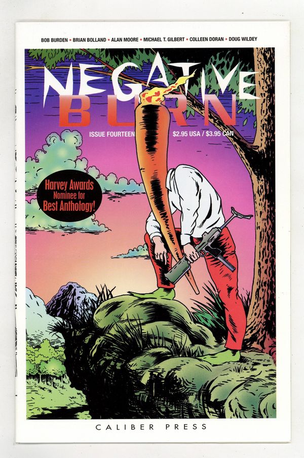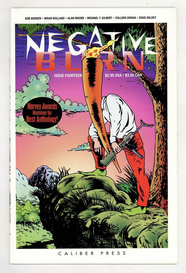 $10.00Cover art by Bob Burden. Boneshaker Part IV, script and art by Phillip Hester. Mr. Mamoulian: Break a Few Hearts, script and art by Brian Bolland. The Chicken That Knew, Like, Everything, script by Michael Moe, art by David Verruni. Mystery of the Flying Fish starring Flaming Carrot, script and art by Bob Burden. Alan Moore's Songbook, script by Alan Moore, art by Colleen Doran. Cyberreal Orbit, script and art by Stephen Chang. Classics Desecrated: Aesop's The Success of the Wicked, script by Doug Wheeler, art by Doug Wildey. The Circle Game, script and art by Michael T. Gilbert. 44 pgs. $2.95. Cover price $2.95.