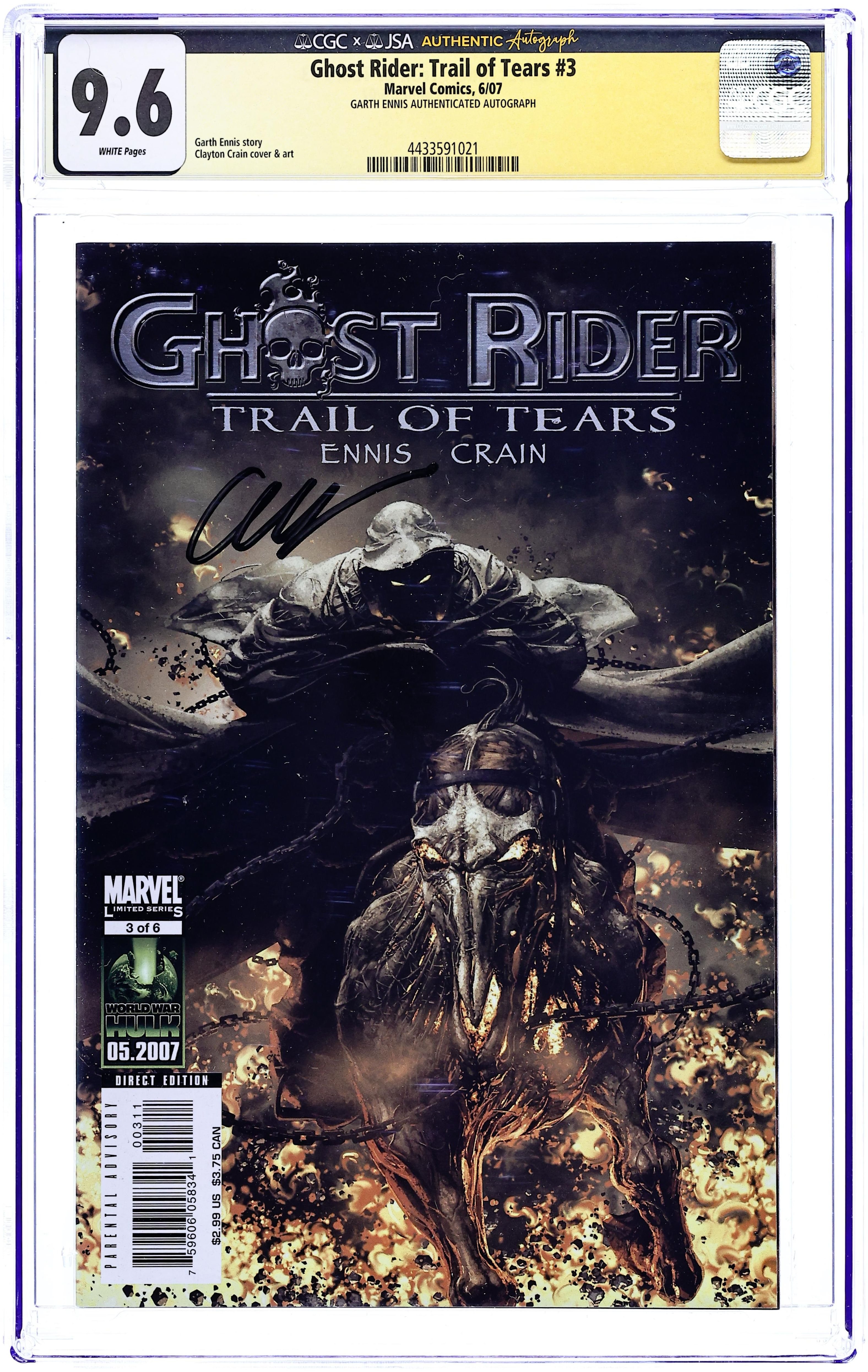 - Garth Ennis Authenticated Autograph. Corner Peg Broken and piece is inside slab.