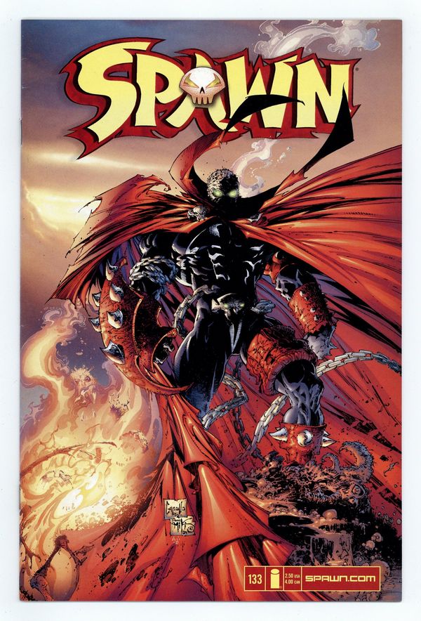 $30.00Direct Edition. (W) Brian Holguin and Todd McFarlane (P) Angel Medina (I) Danny Miki (Cover) Greg Capullo and Todd McFarlane FC32pp$2.50Ongoing monthly series In stores the week of April 30th. The Concept: Al Simmons, once the U.S. government's greatest soldier and most effective assassin, was mercilessly executed by his own men. Resurrected from the ashes of his own grave in a flawed agreement with the powers of darkness, Simmons is reborn as a creature from the depths of Hell. Disfigured, homeless and alone, this warrior now known as Spawn wanders the shadowy alleys of New York City in search of his past life. This Issue: "God is a Bullet, Part 3"?Held captive in a rotting prison in a distant war- torn nation, a broken and battered Al Simmons clings desperately to life. He came here to kill a tyrant -- a tyrant he had a hand in making -- but so far things haven't gone as planned. Now the betrayal of an old friend has put his life in peril. But Simmons still has one ace up his sleeve. Its name: Spawn. Cover price $2.50.