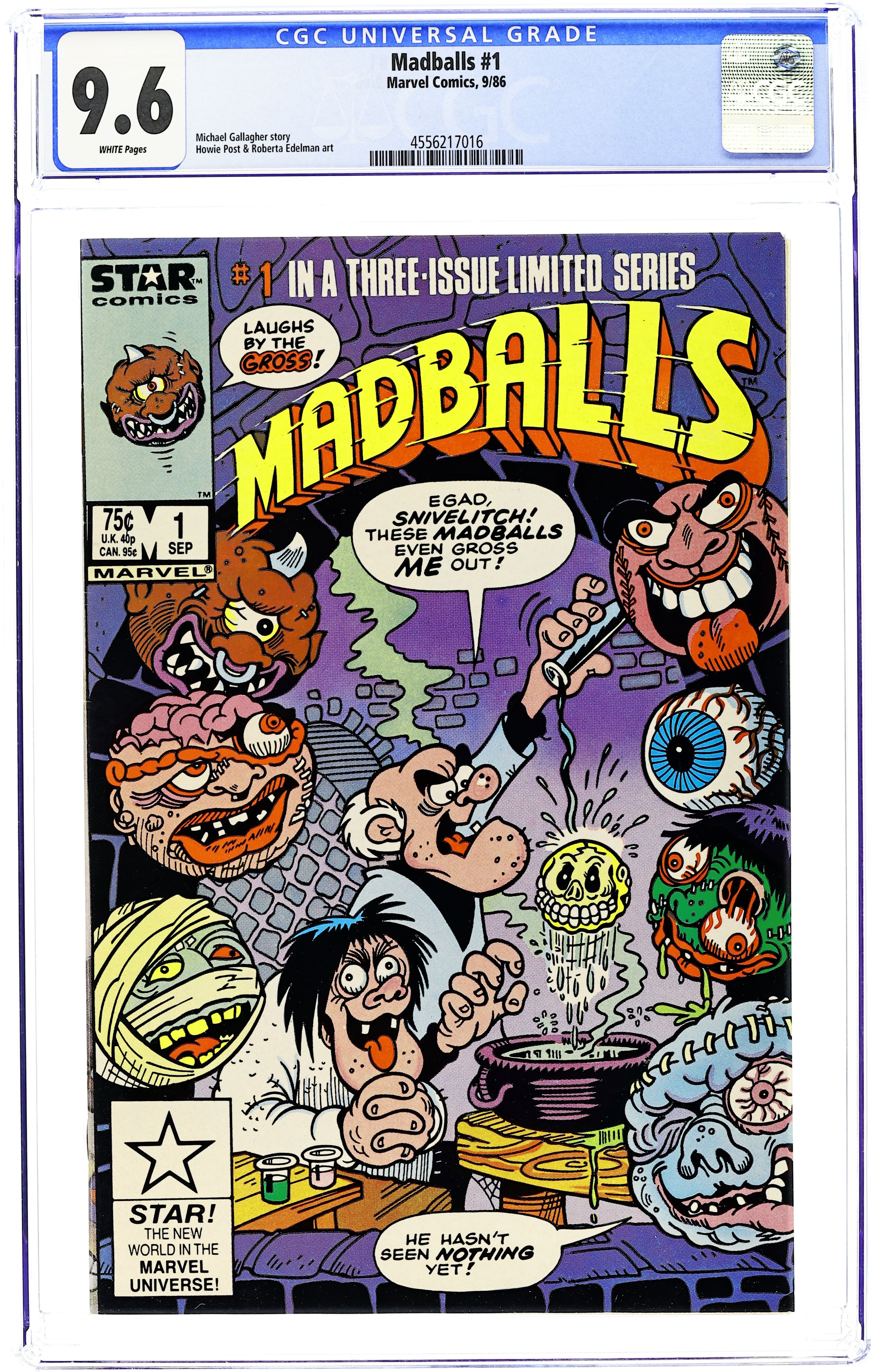 The Madballs end up in a baseball game with the kids and when nearby Dr. Viktor Frankenbeans sees the odd-looking balls that look alive, he wants them for a scientific discovery which will enable him to win the Nobel Prize in "The Evil Dr. Frankenbeans." Issue also has "Corn-Ered" in which the Madballs have to rescue the kids who have been kidnapped by the evil Colonel Corn and his corn field empire. Scripts by Michael Gallagher and art by Howie Post & Roberta Edelman. Cover price $0.75.