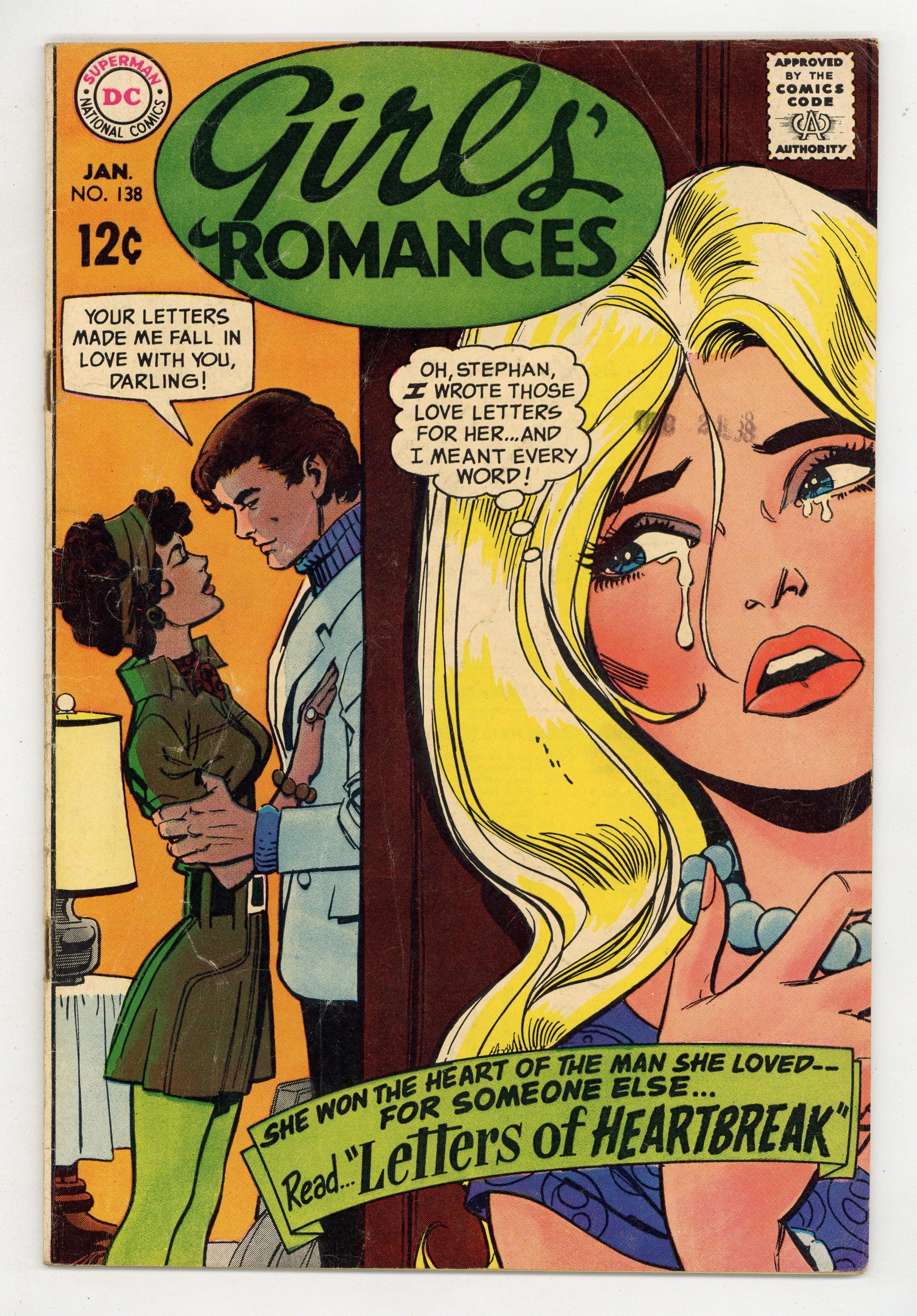 $5.00She won the heart of the man she loved -- for someone else! "Letters of Heartbreak" is the cover-featured 8 page story drawn by Win Mortimer? and Vince Colletta? Plus: 5 page story "Love from a Stranger" pencilled by Tony Abruzzo; 9 page story "Romance Without Love" drawn by John Celardo and Bernard Sachs; 1 page Julia Roberts, Romance Counselor letters page (with logo illustration pencilled by Bob Oksner); 2 page Mad Mad Modes for Moderns filler pencilled by Jay Scott Pike; 7 page story "Bring Me Your Heart" pencilled by John Forte? Cover price $0.12.