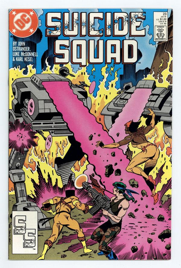 Direct Edition. 1st cameo appearance of Oracle (Barbara Gordon) from Birds of Prey. Cover by Luke McDonnell and Karl Kesel. Weird War Tales, script by John Ostrander and Kim Yale, art by Luke McDonnell and Karl Kesel; The Squad splits up to fight aliens in Russia and Australia. Invasion tie-in. Story continued in Invasion #3. Deadshot, Amanda Waller, Thanagarians (Hawkman), Rocket Reds, New Guardians, Captain Boomerang app. 36 pgs., full color. $1.00. Cover price $1.00.