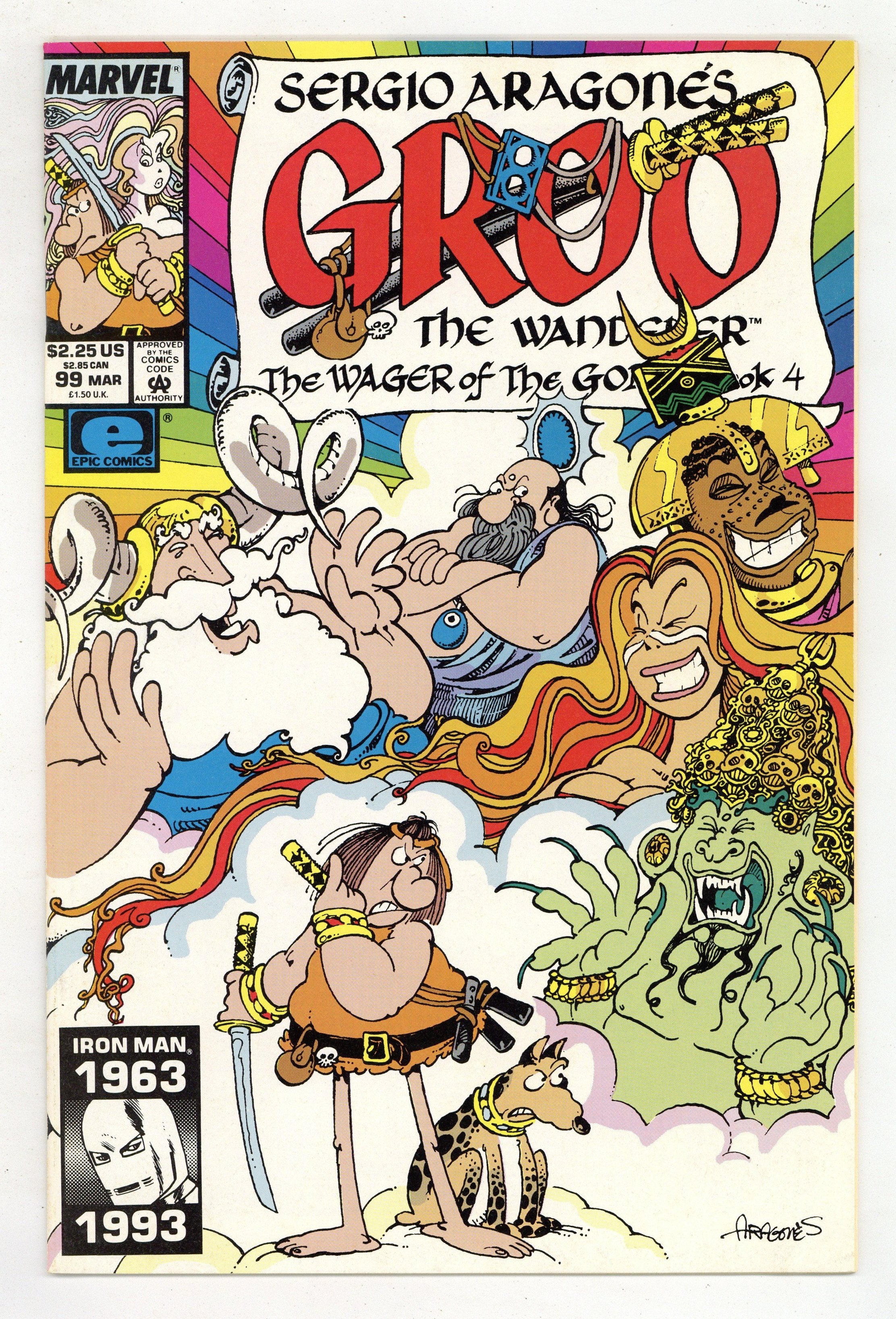 $17.50Comic featuring the humorous misadventures of the mighty (physically) but not-so-great (mentally) warrior named Groo. Cover art by Sergio Aragones. The Wager of the Gods: Book Four, script by Sergio Aragones (co-plot) and Mark Evanier (co-plot & dialogue), art by Sergio Aragones; Sage relates the grand finale of the wager of the gods. Li'l Groo one-page story by Aragones. Rufferto one-page story by Aragones. 36 pgs. $2.25. Cover price $2.25.