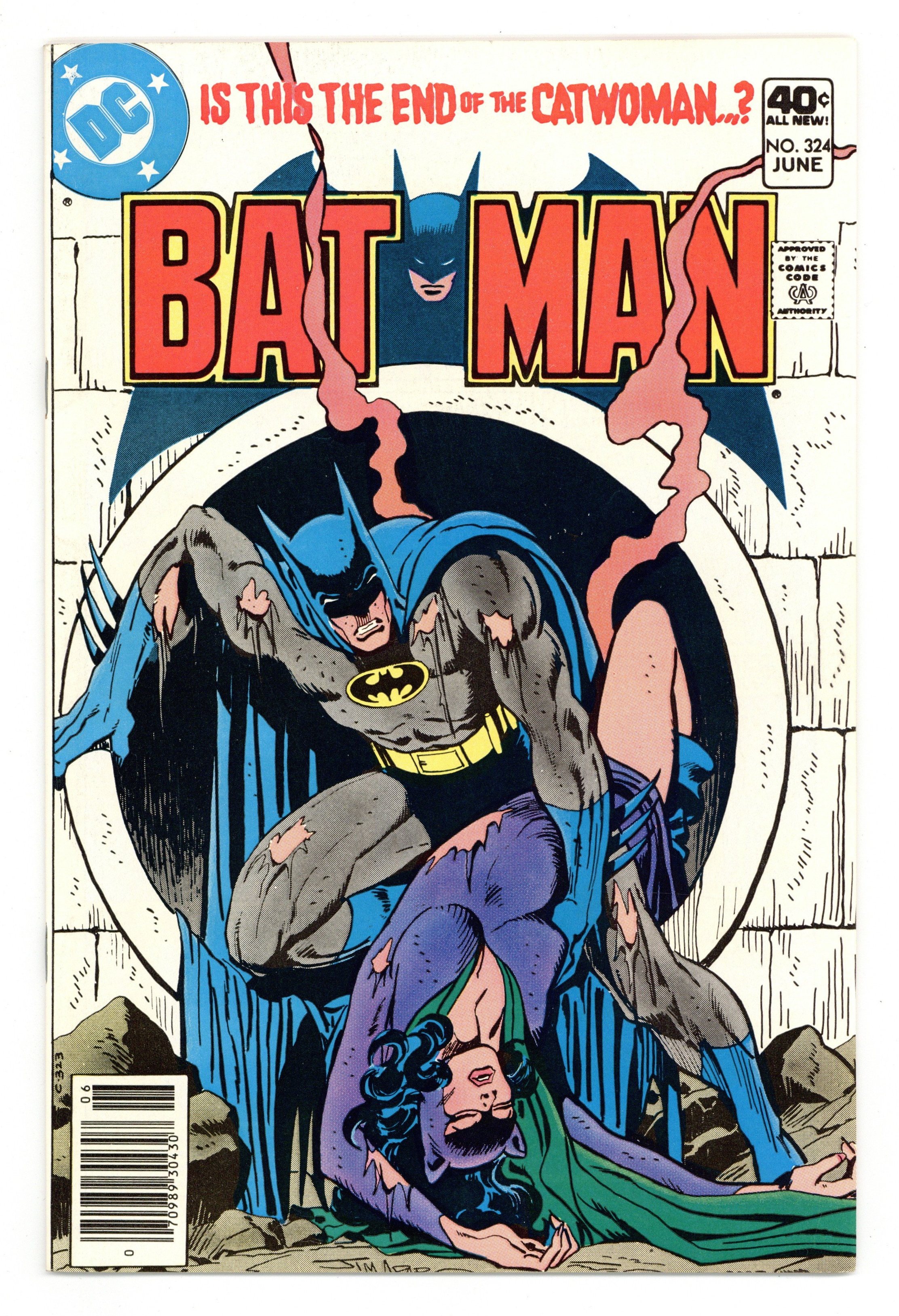 Tags: Batman$29.50Cover art by Jim Aparo. "The Cat Who Would Be King!" starring Batman, Catwoman, and James Gordon, script by Len Wein, pencils by Irv Novick, inks by Bob Smith; Batman and Catwoman escape from the trap of a deadly Cats Cradle and trace the Catman to the islands owned by millionaire Adros Akropolis. Story continued from Batman #323. Hostess Twinkies ad starring the Flash, pencils by Curt Swan, inks by Vince Colletta. Answer Man featuring Bob Rozakis. Flash, Batman & Vigilante parody strip by Fred Hembeck. 36 Pages, Full Color. Cover price $0.40.