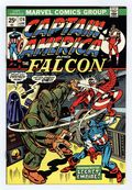 $10.00"It's Always Darkest...!" Guest-starring the X-Men. Script by Steve Englehart. Pencils by Sal Buscema. Inks by Vince Colletta. Cover by Gil Kane (pencils), John Romita Sr. (layouts), and Frank Giacoia. Somewhere in the Desert Southwest lies the hidden headquarters of the Secret Empire. And at this moment Steve Rogers and Sam Wilson are inside it -- posing as the empire's newest henchmen. Meanwhile on the outside, Professor X uses his telepathic powers to guide their movements and keep them safe. However eventually Steve and Sam are exposed! And the mayhem begins! The Secret Empire sends two dozen of its agents to kill Cap and the Falcon! But then Cyclops and Marvel Girl enter the fray! In time all combatants reach the empire's top secret laboratory...where they make an incredible discovery!The empire is indeed evil. Cameo appearances by Moonstone, Quentin Harderman, Linda Donaldson, the Blob, Mastermind, Mesmero, Unus, Havok, Lorna Dane, Angel, Iceman, and the Beast. (Notes: The leader of the Secret Empire mentions the actual Watergate Scandal taking place in the UnitedStates in 1974. The letters page includes an essay from Stan Lee and Roy Thomas concerning the recent price increase. The letters page also contains Marvel Value Stamp series A #48 Kraven by Steve Ditko.) 36 pages. Cover price $0.25.