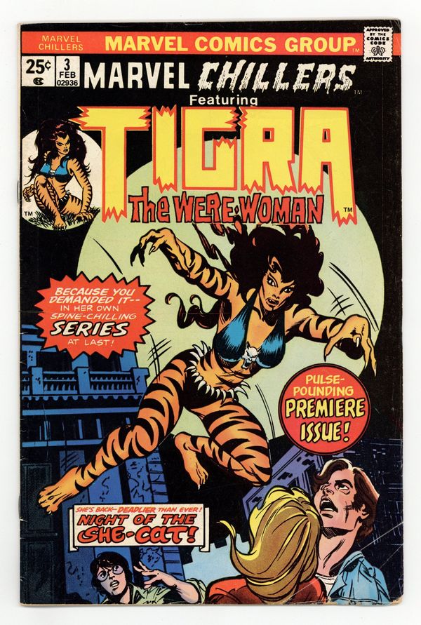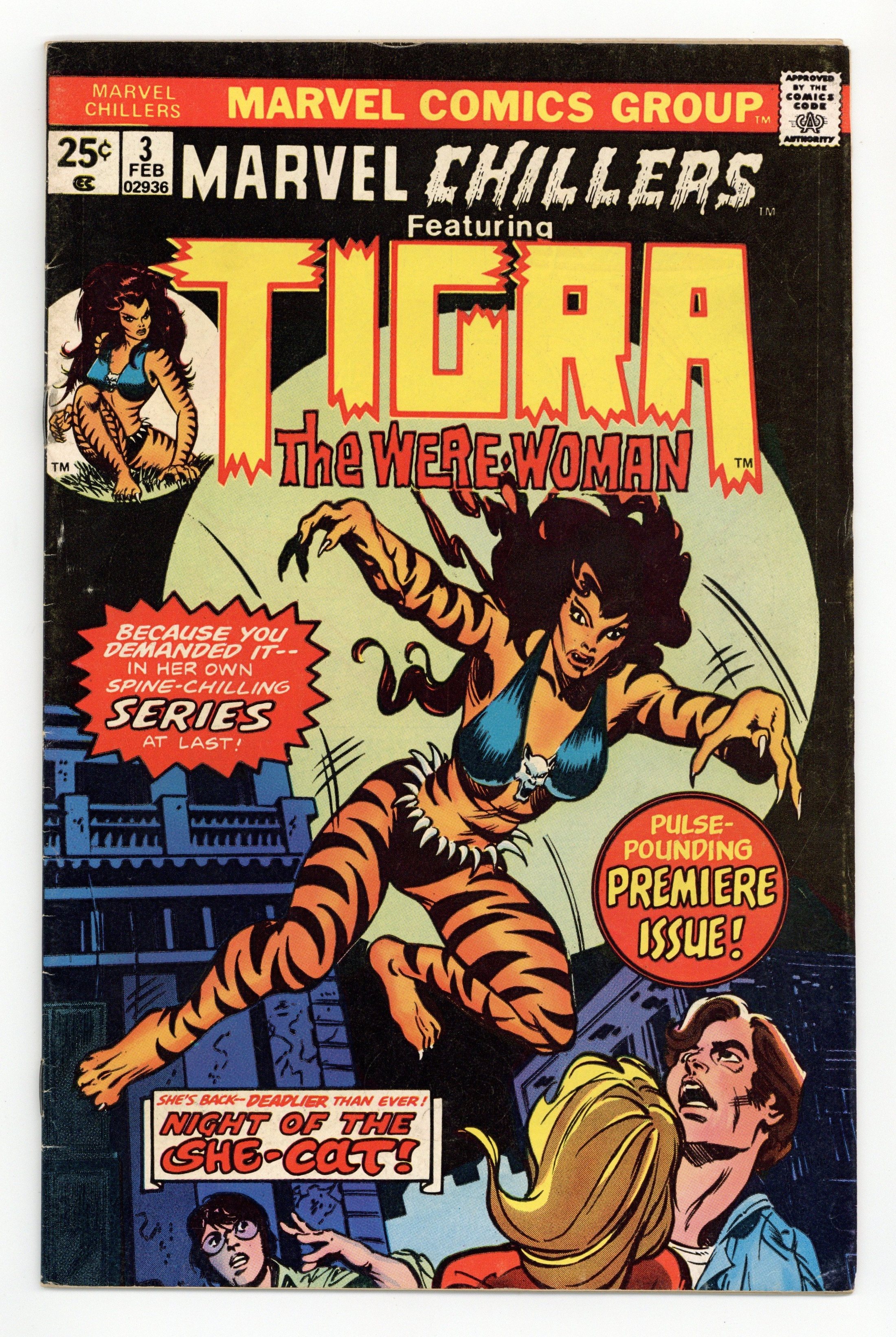 Holocaust is Our Business! - Written by Tony Isabella. Art by Will Meugniot, Frank Chiaramonte and Sam Grainger. Cover by Howard Chaykin and Bernie Wrightson. She's back -- deadlier than ever! Because you demanded it -- Tigra in her own spine-chilling series at last! Characters in this issue: Tigra [Greer Grant; also as the Cat (flashback)]; Joshua Plague; Rat Pack; Doctor Joanne Tumolo; Red Wolf (last page cameo). 32 pages, full color. Cover price $0.25.